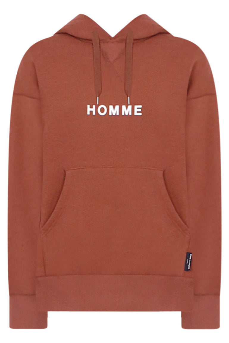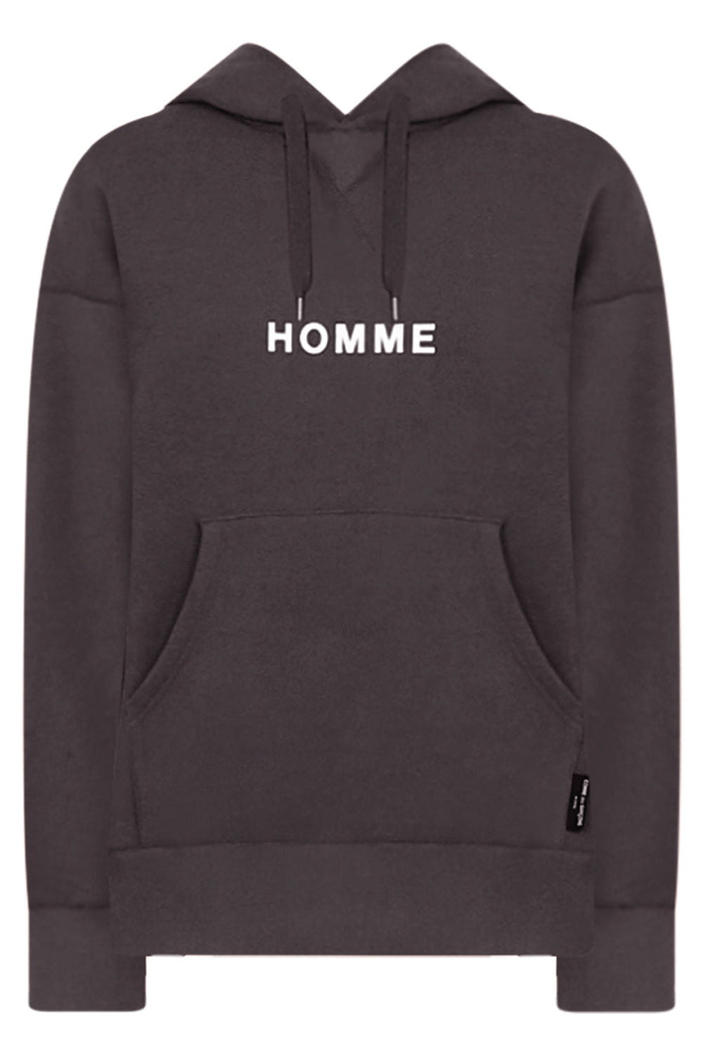 The Comme Des Garcon Homme Logo Hoodie is crafted from cotton, and is a standard straight fit, featuring a kangaroo pocket, long sleeves, ribbed hems, hood with drawstrings and 'HOMME' screen printed across the chest.