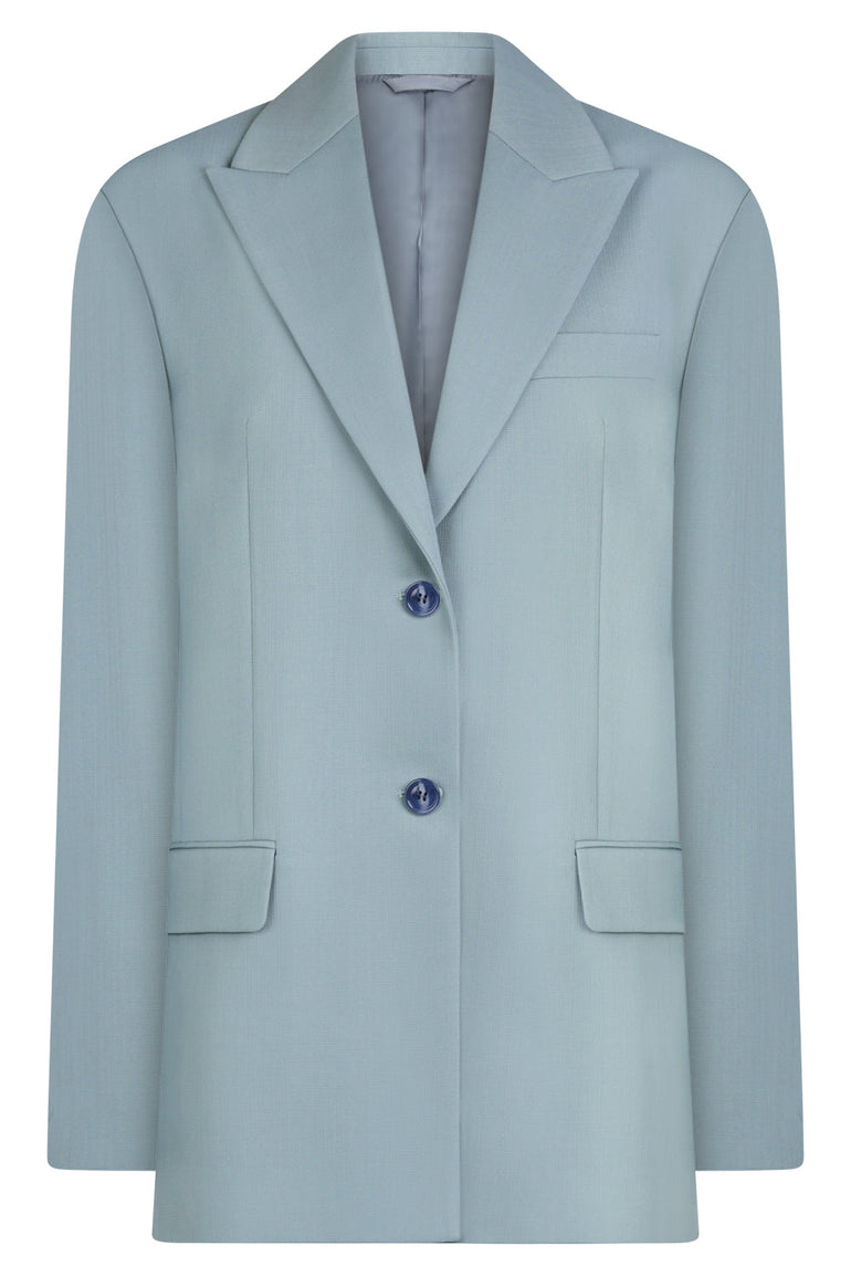 Jarida Single Breasted Wool Blend Blazer | Aqua Blue