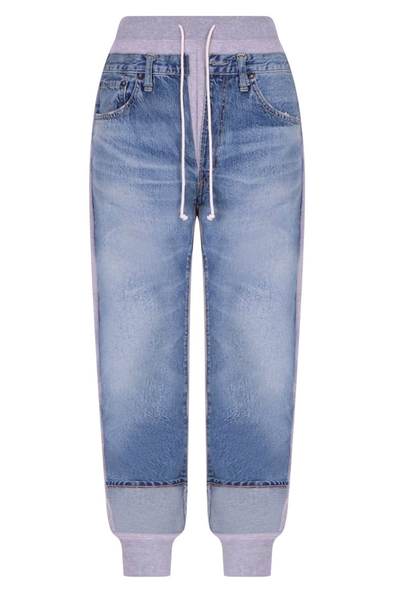 The Junya Watanabe Jean Joggers are a part of a collaboration with Levis, and are crafted from a French terry and a faded, indigo denim. This style features a drawstring at the ribbed waistband, ribbed cuffs and denim pockets at the front and back.