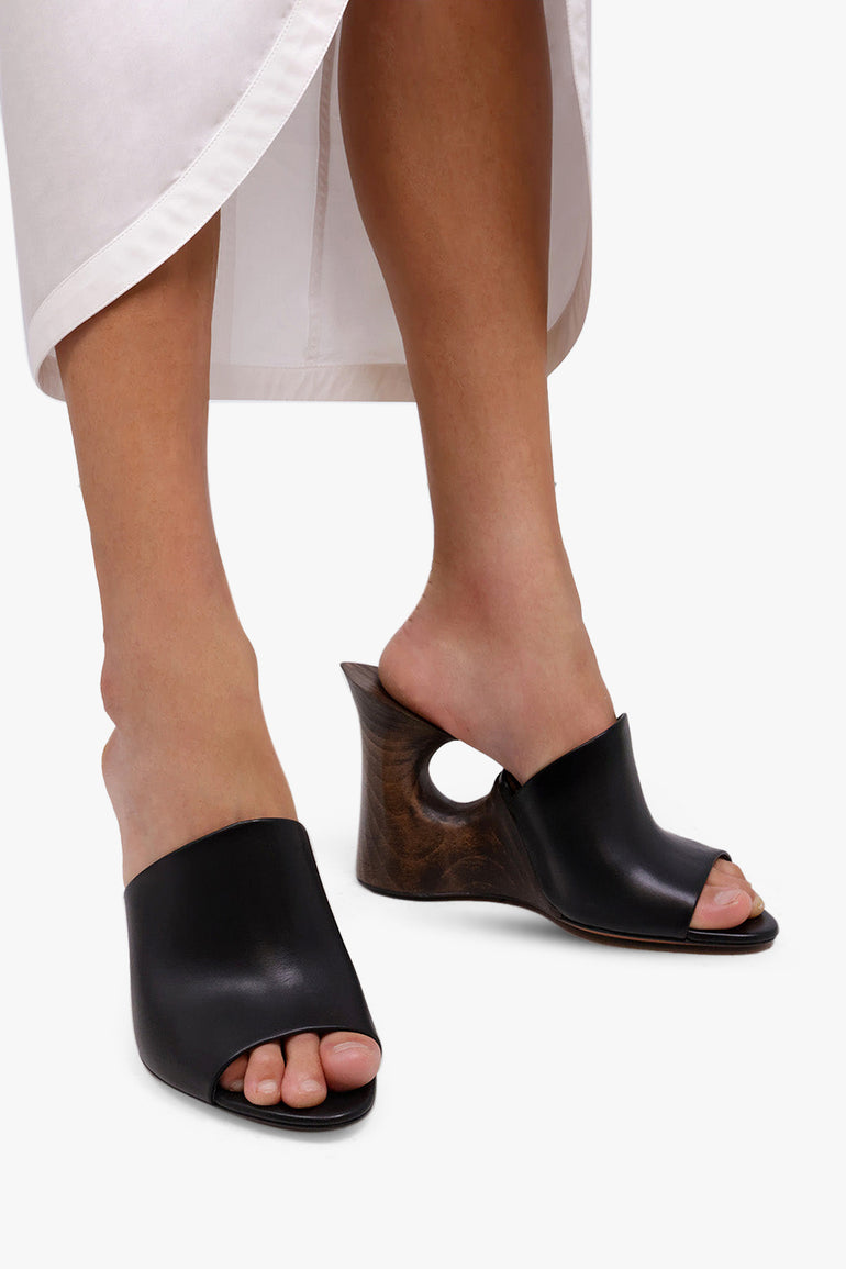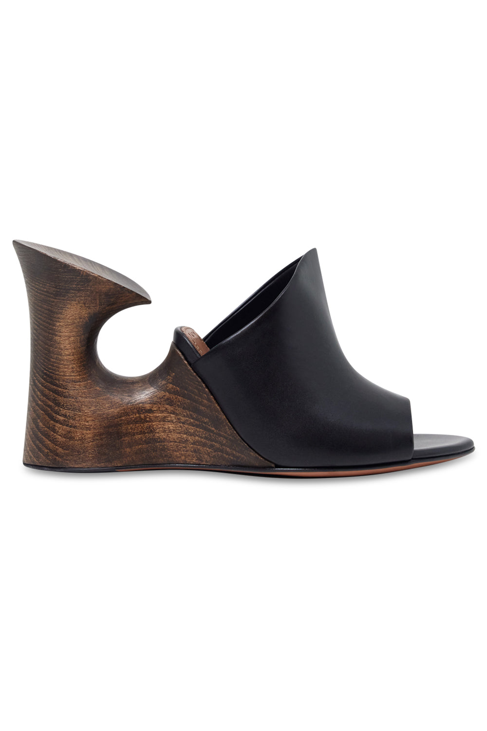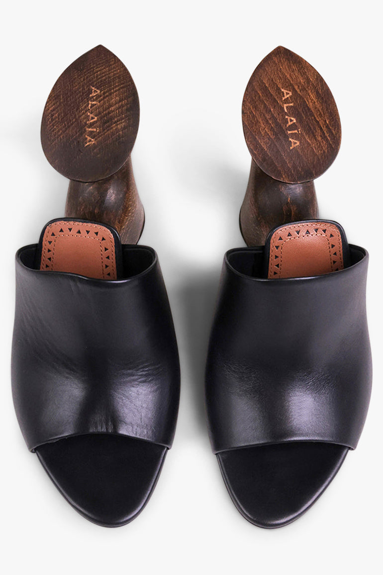 ALAIA SHOES La Sculpture Calfskin and Wood Mule | Black