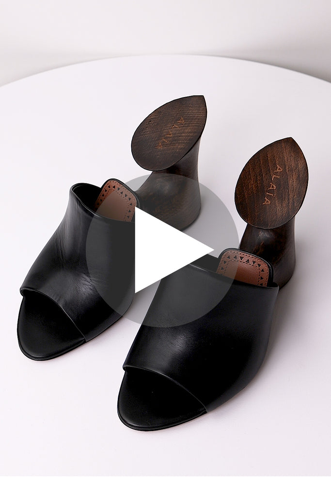 ALAIA SHOES La Sculpture Calfskin and Wood 100mm Mule | Black