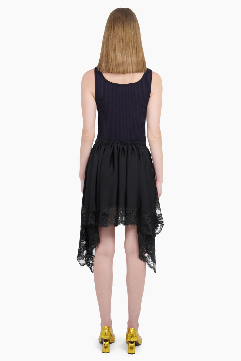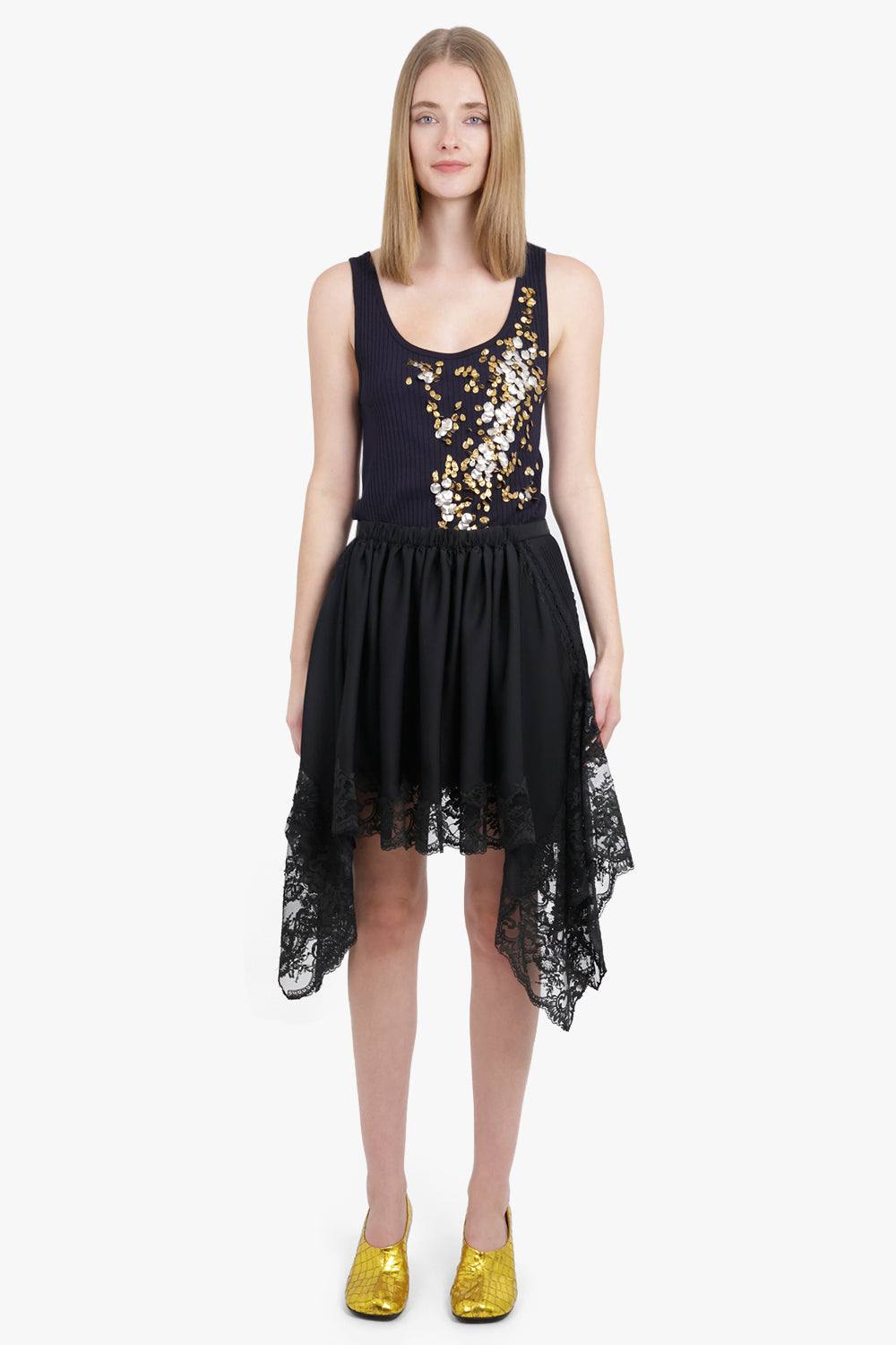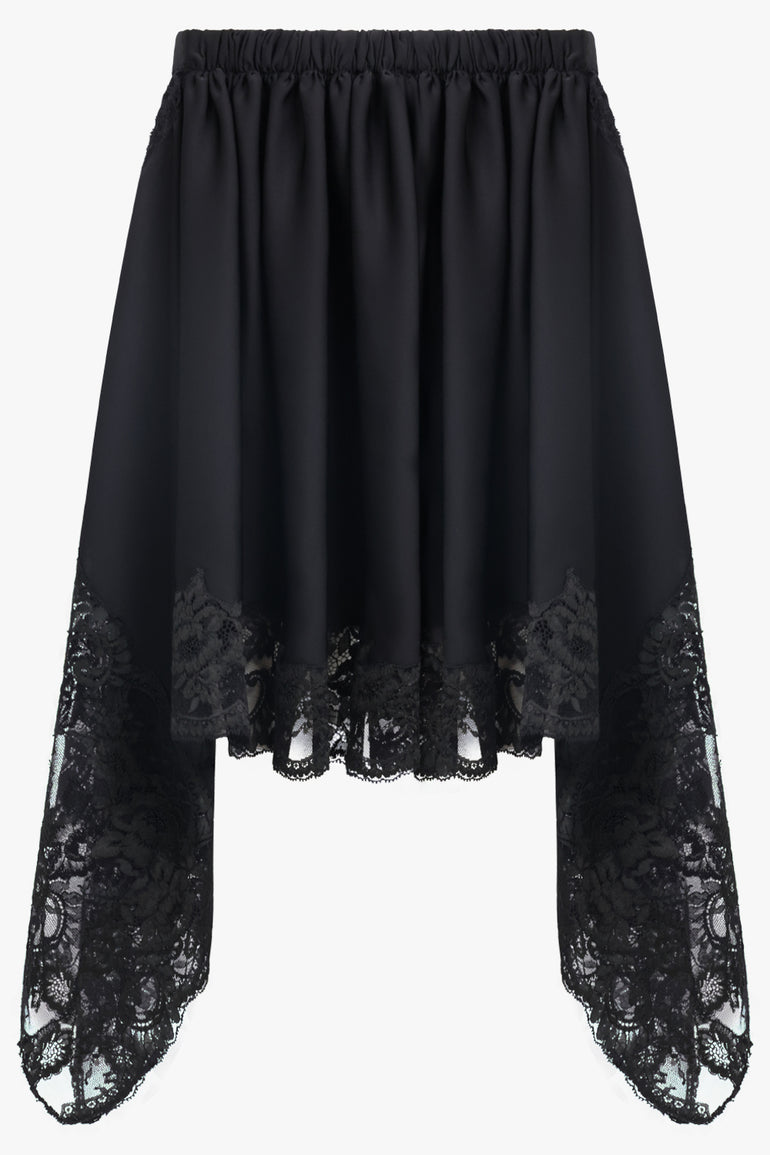 RABANNE RTW Lace Detail Asymmetric Mini X Midi Skirt | Black