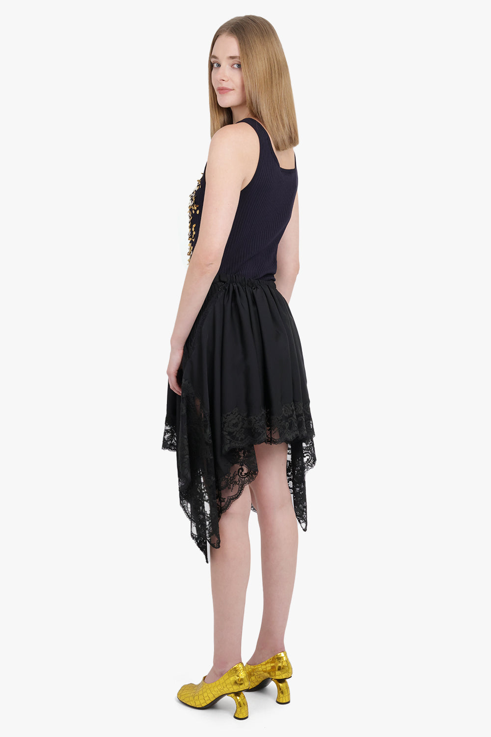 Lace Detail Asymmetric Mini X Midi Skirt | Black