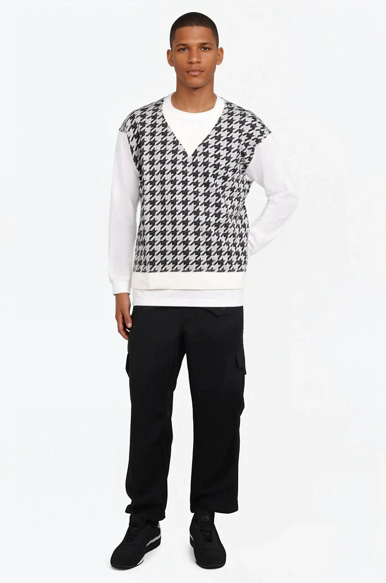 Layered L/S T-Shirt/Houndstooth Knit | White/Black