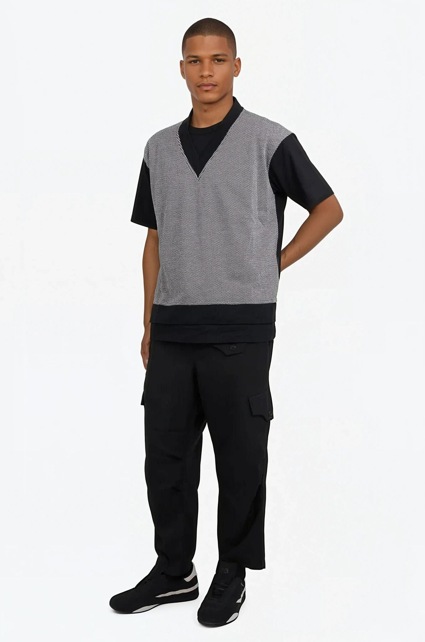 COMME DES GARCONS HOMME RTW Layered T-Shirt/Print Knit S/S T-Shirt | Black/White