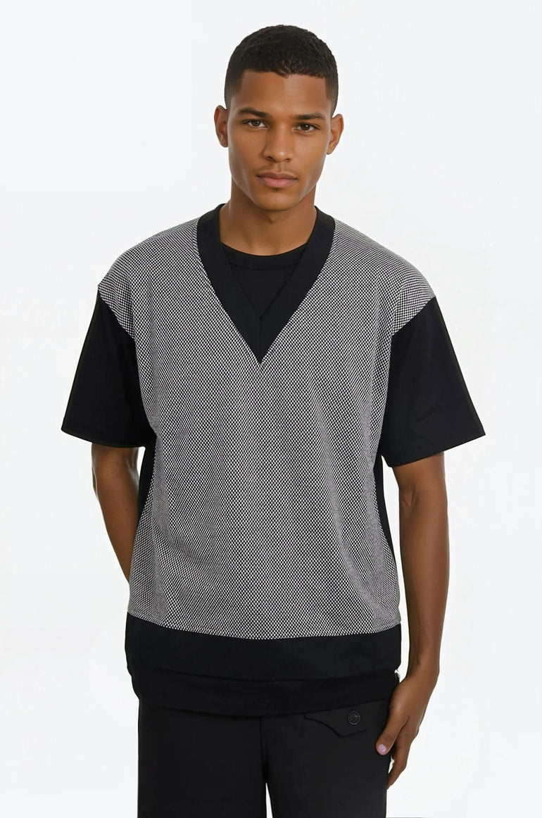Layered T-Shirt/Print Knit S/S T-Shirt | Black/White