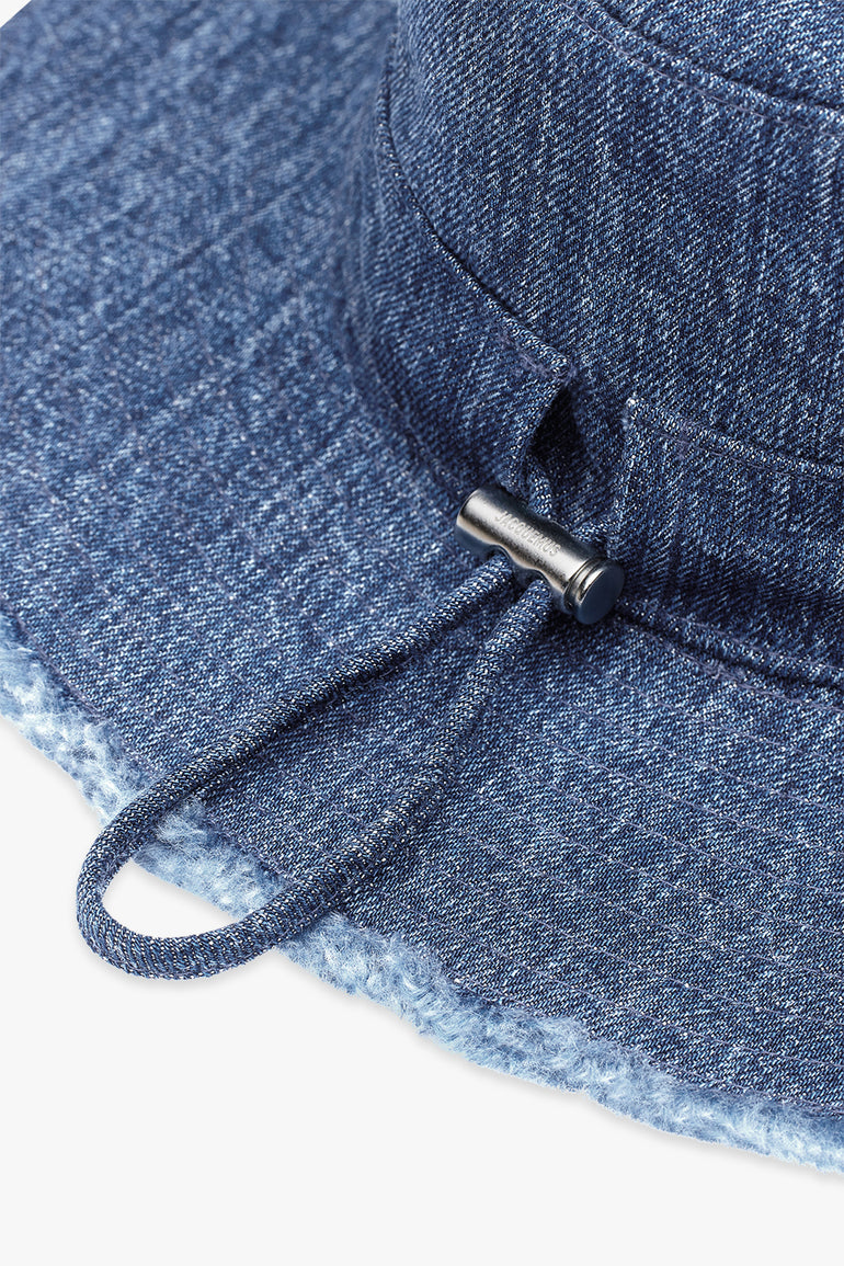 The Jacquemus Le Bob Artichaut Hat in Denim is crafted from cotton, and is a large brim style featuring metal logo at the front, raw hems and adjustable ties.