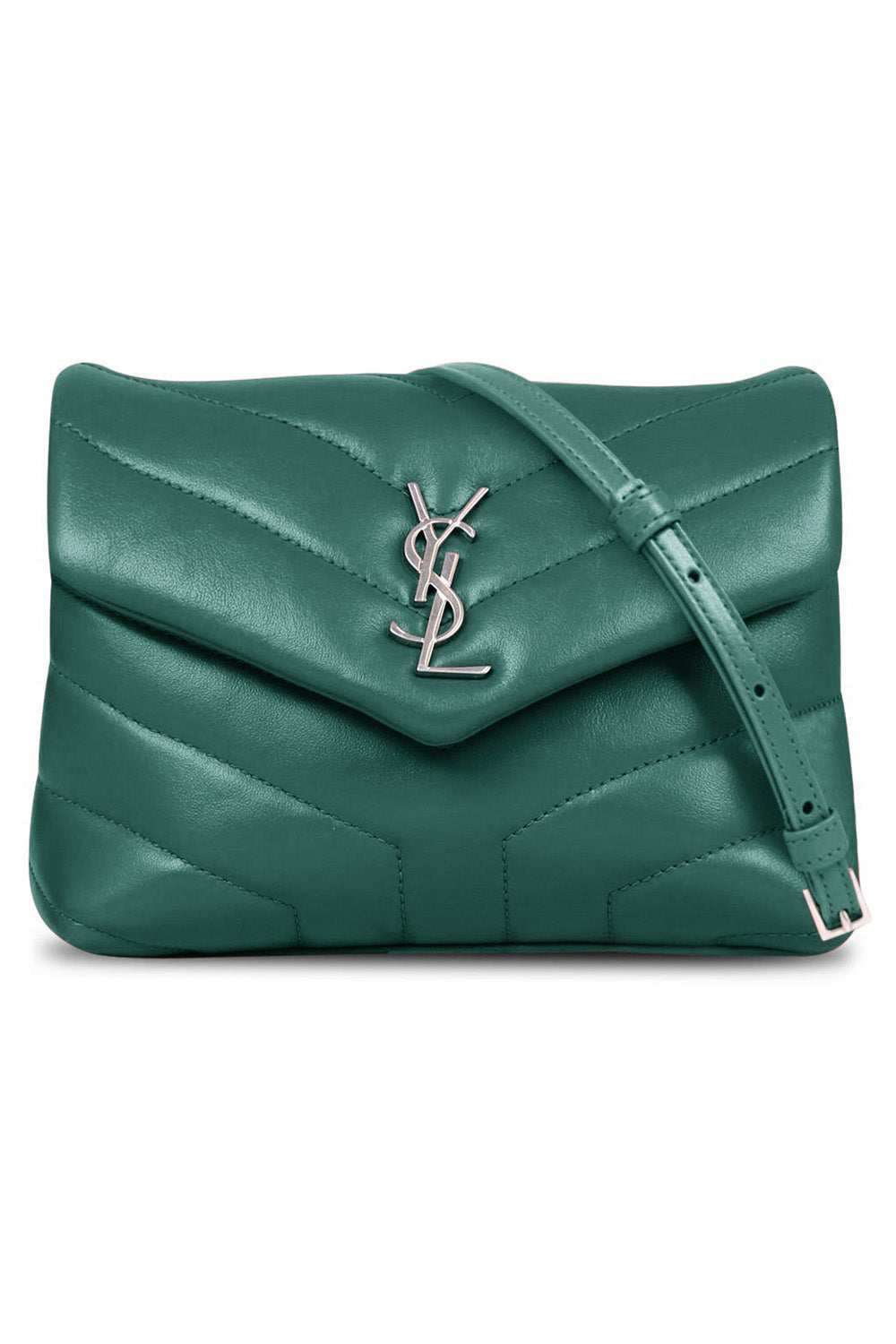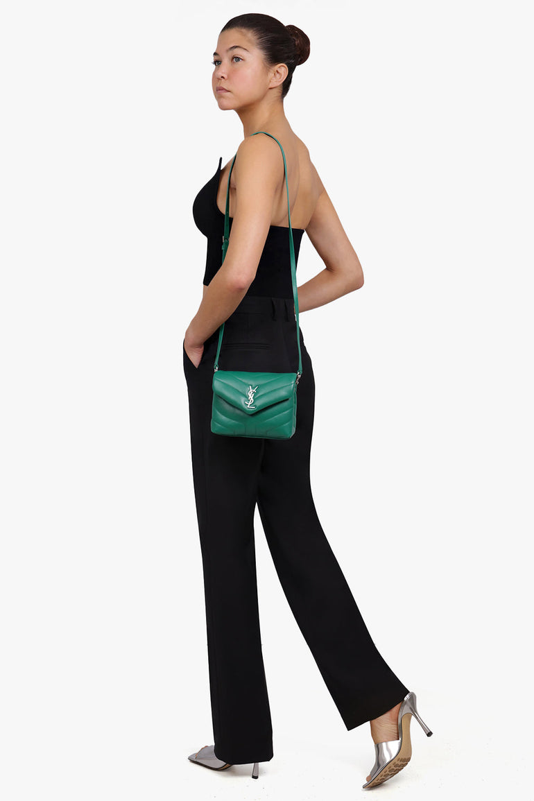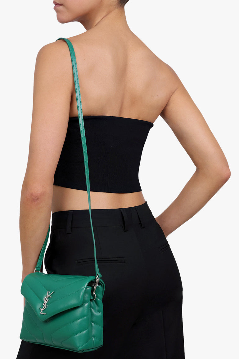 SAINT LAURENT BAGS MULTI LOULOU TOY FLAP BAG ADJUSTABLE STRAP | GREEN FIELD/SILVER