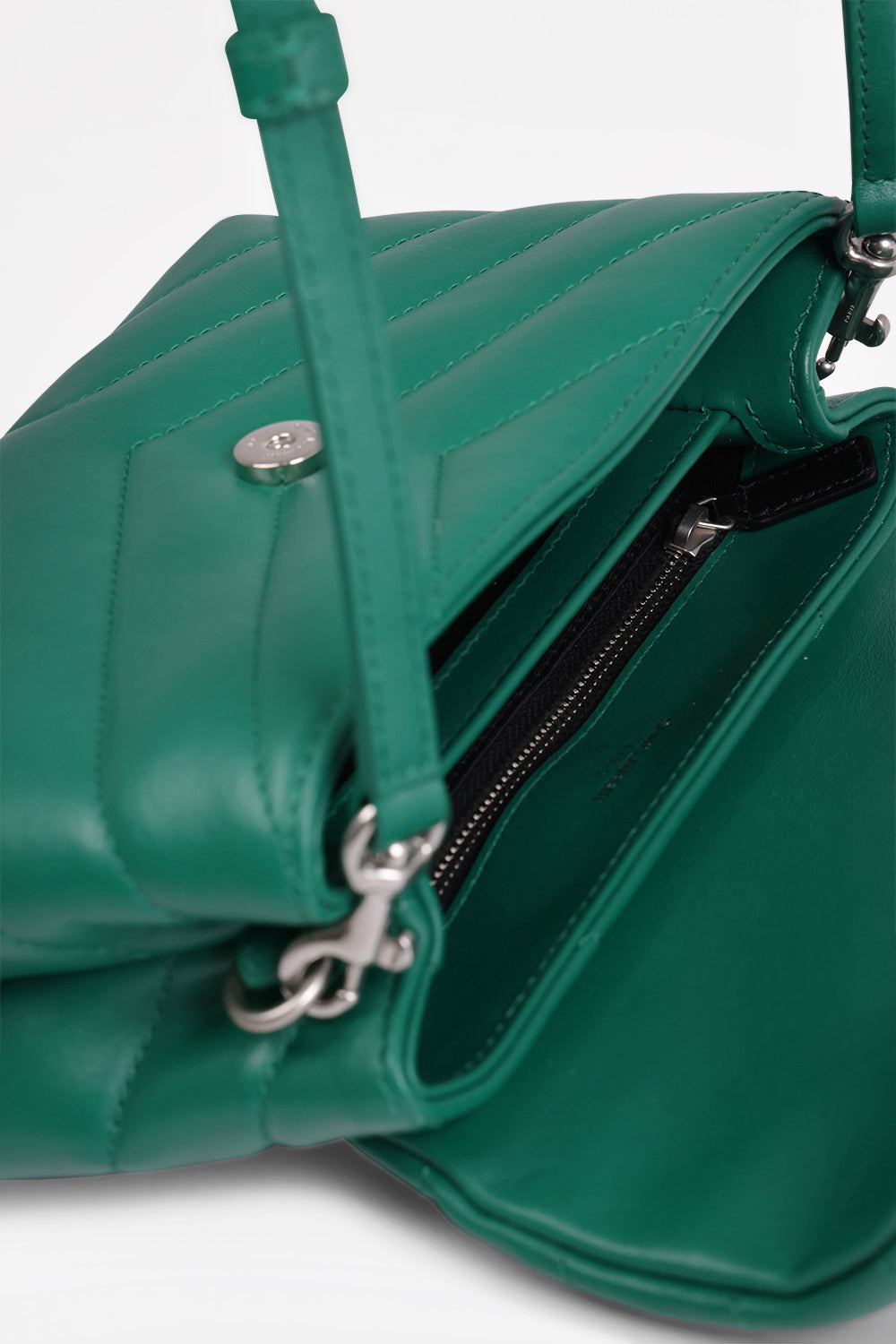 LOULOU TOY FLAP BAG ADJUSTABLE STRAP | GREEN FIELD/SILVER