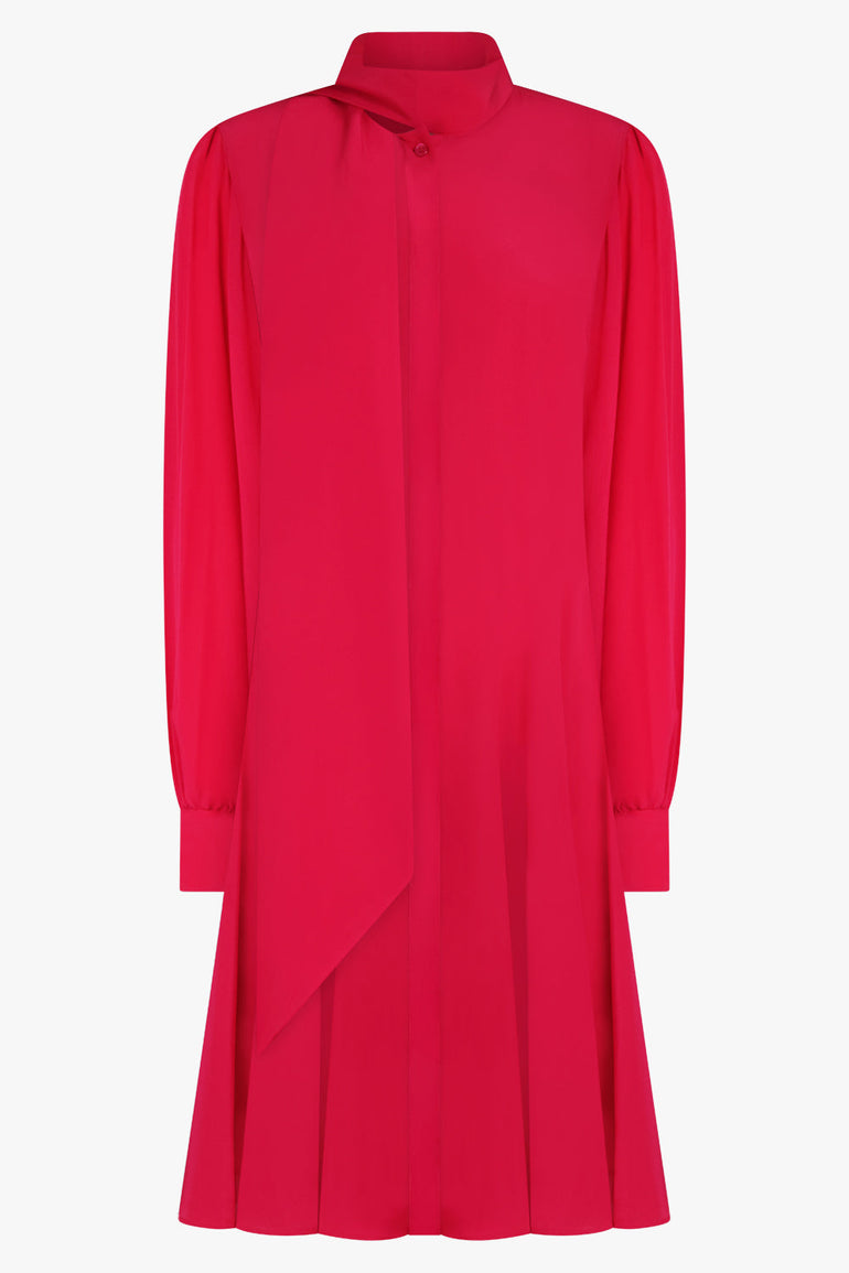 Midi Crepe De Chine Neck Tie Dress | Fuschia