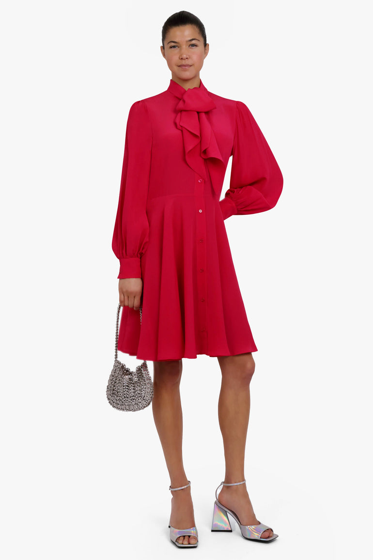 NINA RICCI RTW Midi Crepe De Chine Neck Tie Dress | Fuschia