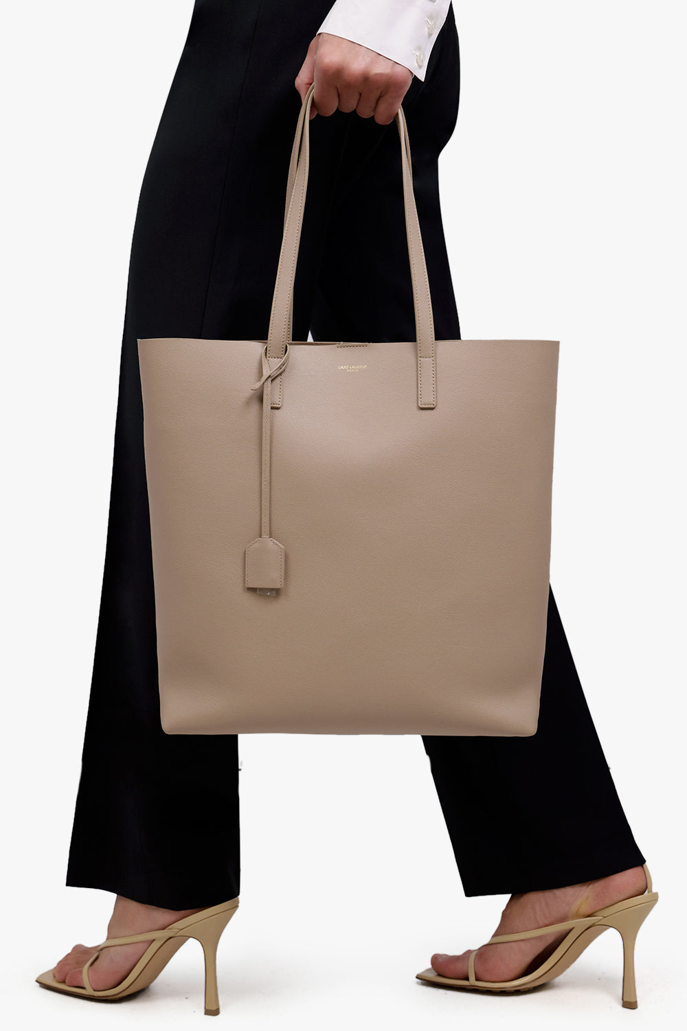 The Saint Laurent North South Shopping Tote is made of a supple calfskin leather. It features gold-toned metal hardware with the iconic YSL logo, magnetic snap closure, a detachable strap and an interior zip pouch. Colour note: This colour is a true beige with slightly cool tones.