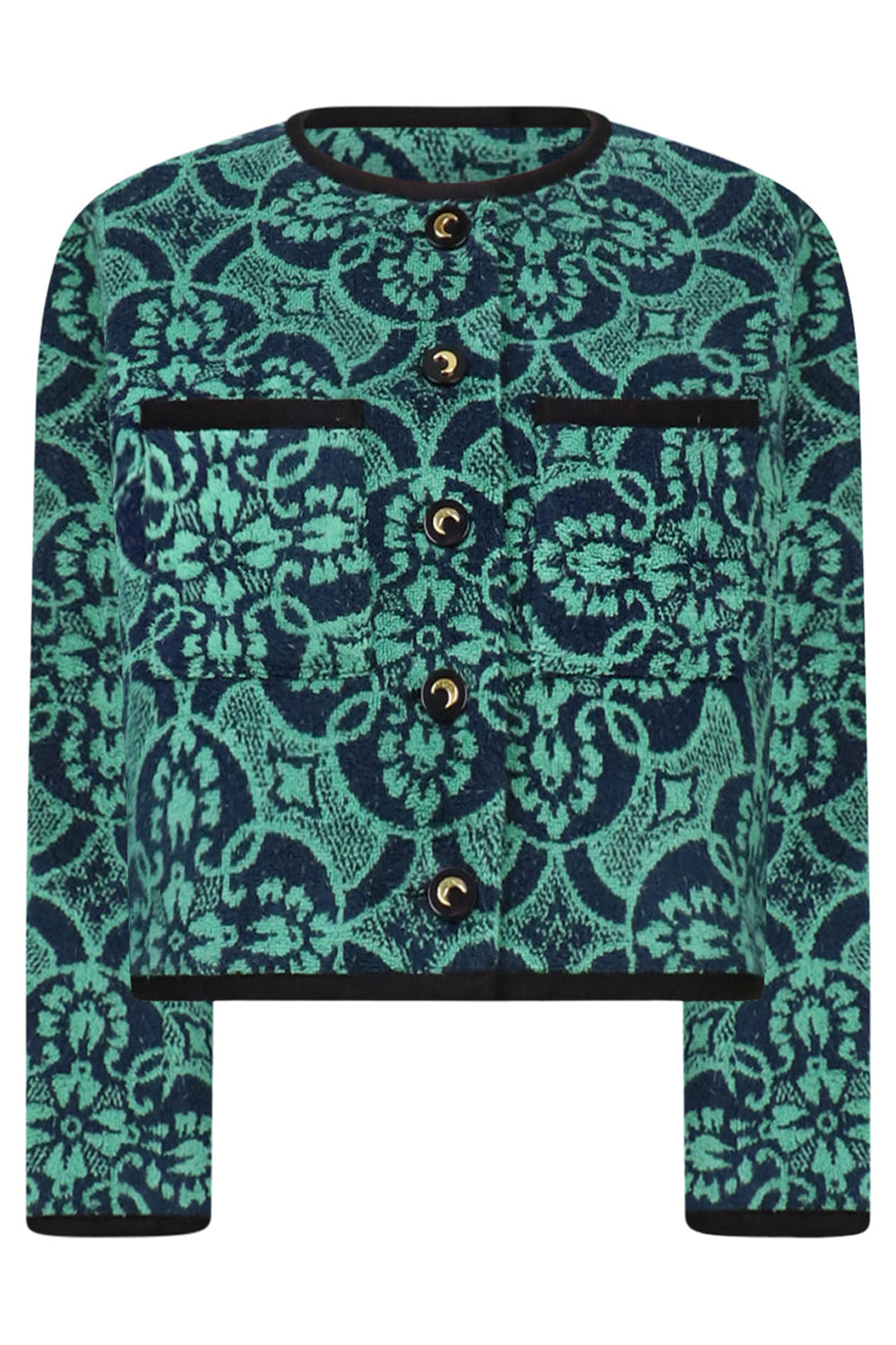 Marine Serre's Oriental Mini Skirt in Fuschia is made from up-cycled jacquard towels and is inspired by 90's Paris runways. Finished with a black trim at the waist, it is the perfect length for its style.