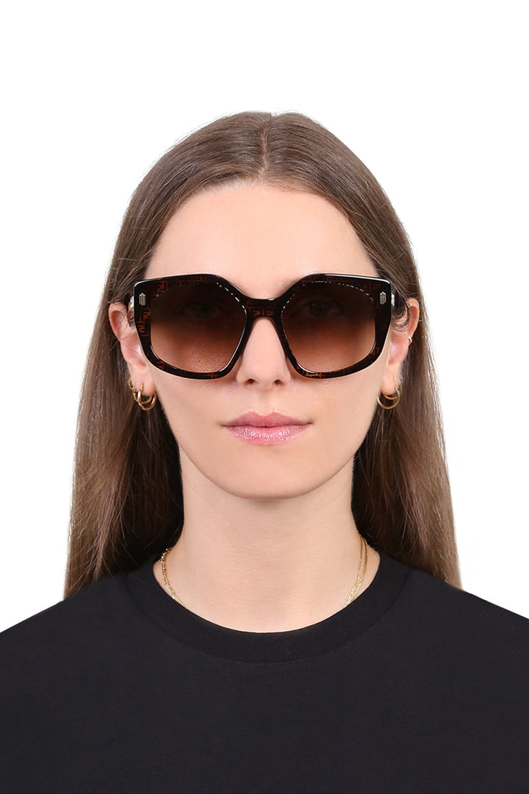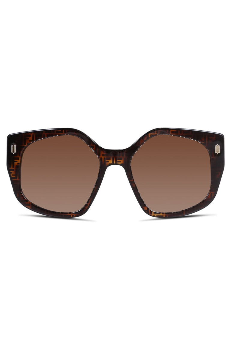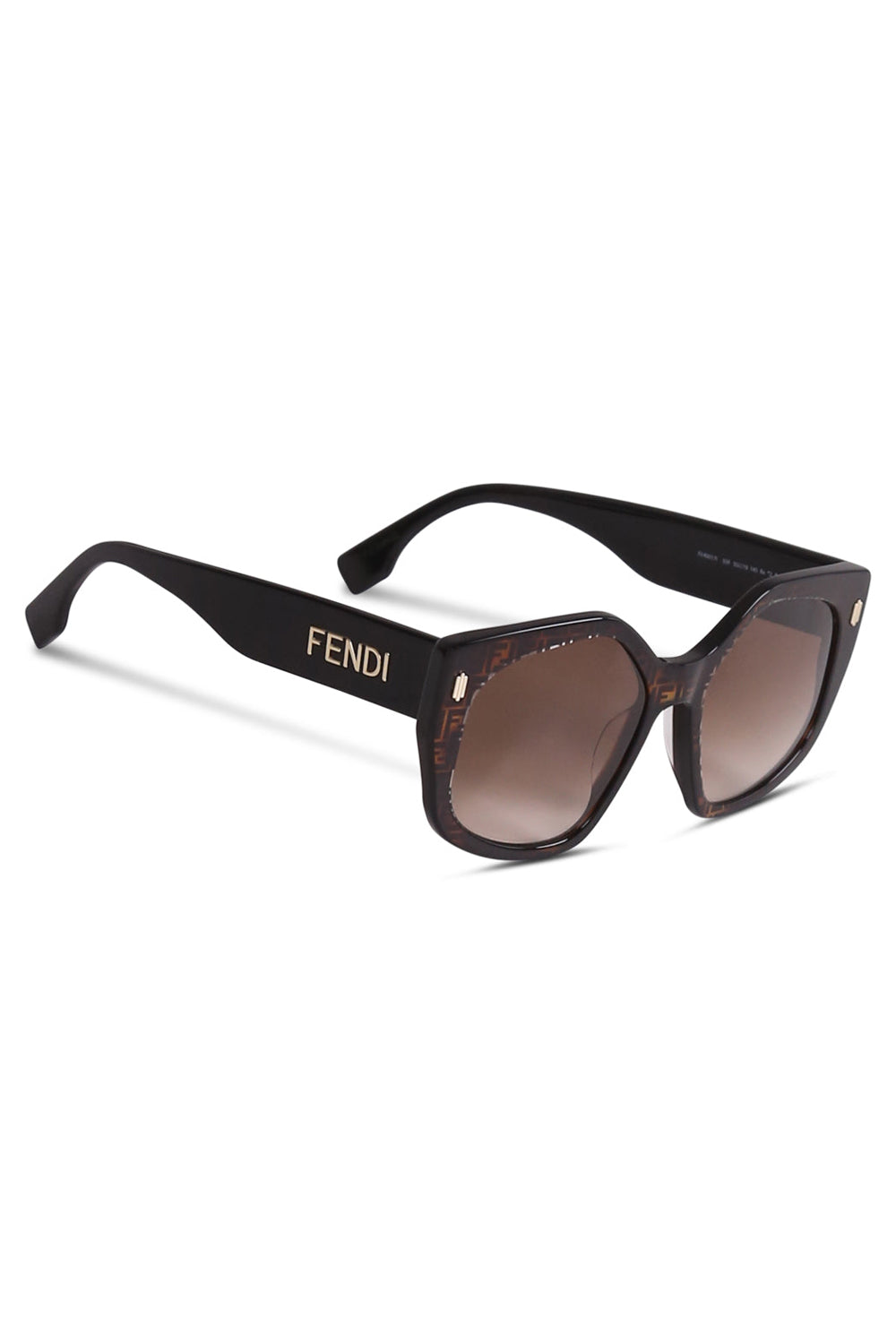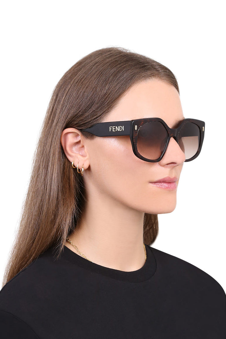 The Fendi Oversized FF Logo Sunglasses are crafted from a black acetate with FF Havana interior. This style is finished with brown gradient lenses and gold-coloured metal FENDI logo on the temples.