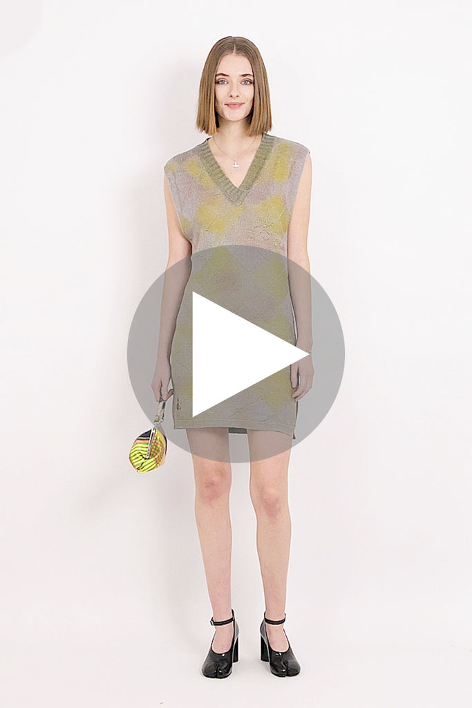 Pearl V Neck S/Less Argyle Knit Dress | Multi