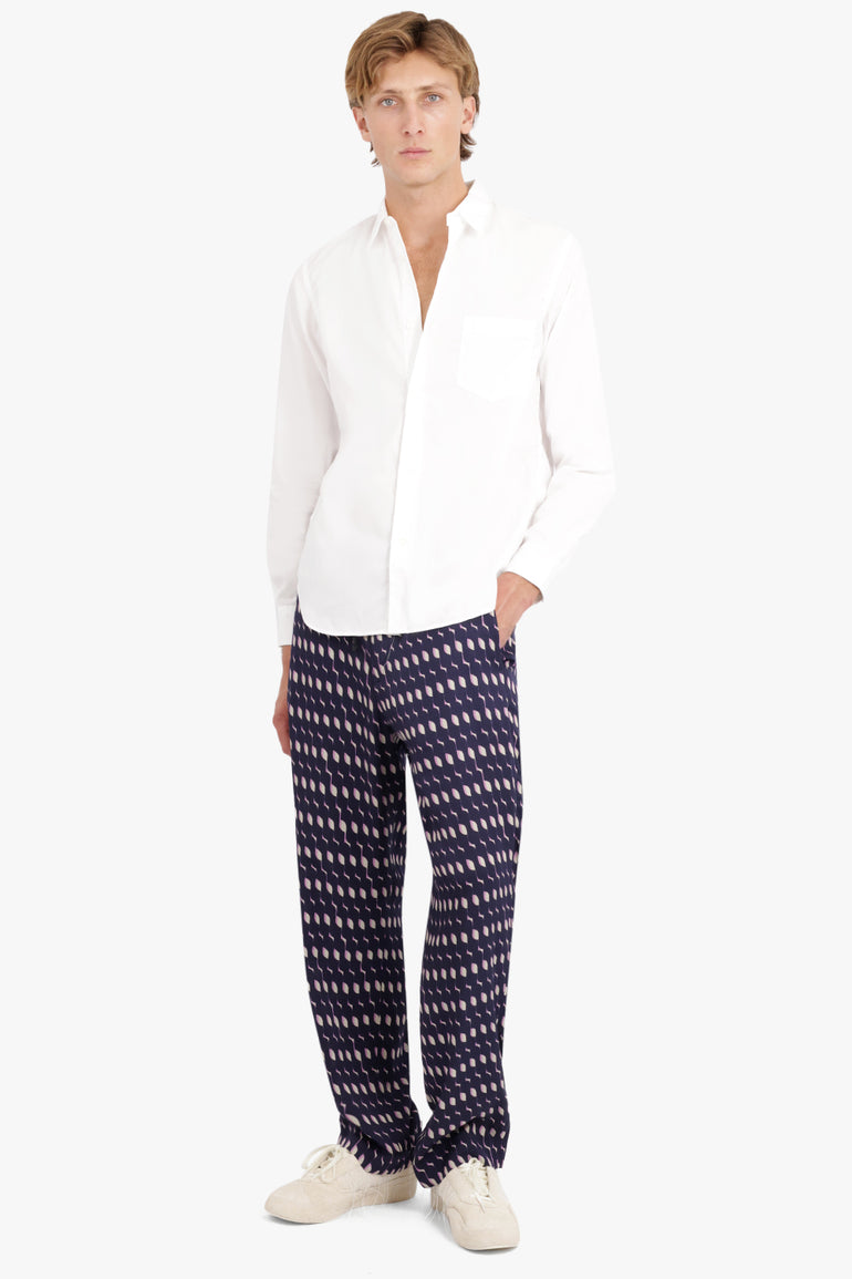 Crafted with both fashion and comfort in mind, the Penny Pants feature a practical elastic drawstring waist and a timeless straight fit. The traditional four pocket design is enhanced with an elegant jacquard print, adding a touch of sophistication to any look.