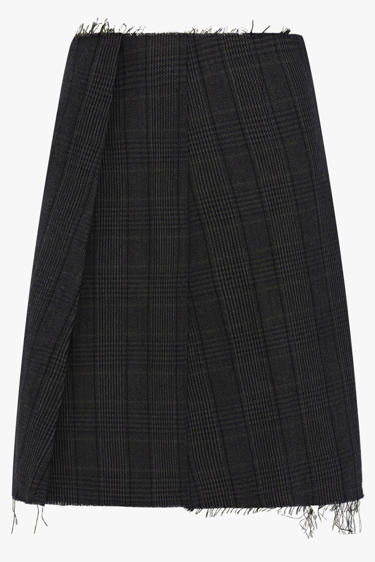 A pleated mini skirt crafted with a mid-weight tartan check, featuring raw-finished seams and sourced from Japan. This skirt has a side zip and a mid-rise fit.