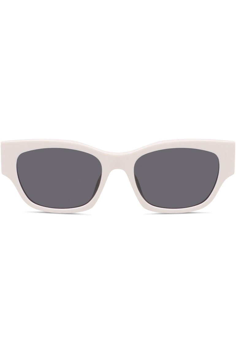 Celine Monoschroms 05 sunglasses in ivory are an acetate frame featuring the Celine branding on the side and taking on a masculine geometry tamed by round, feminine edges.