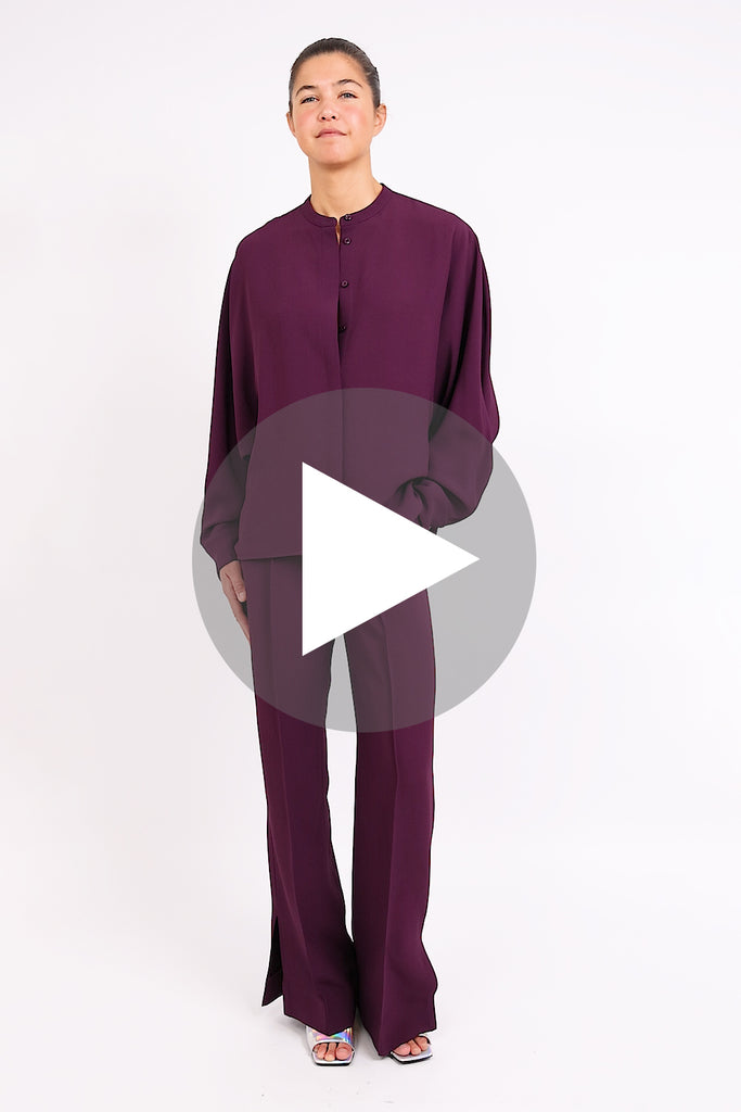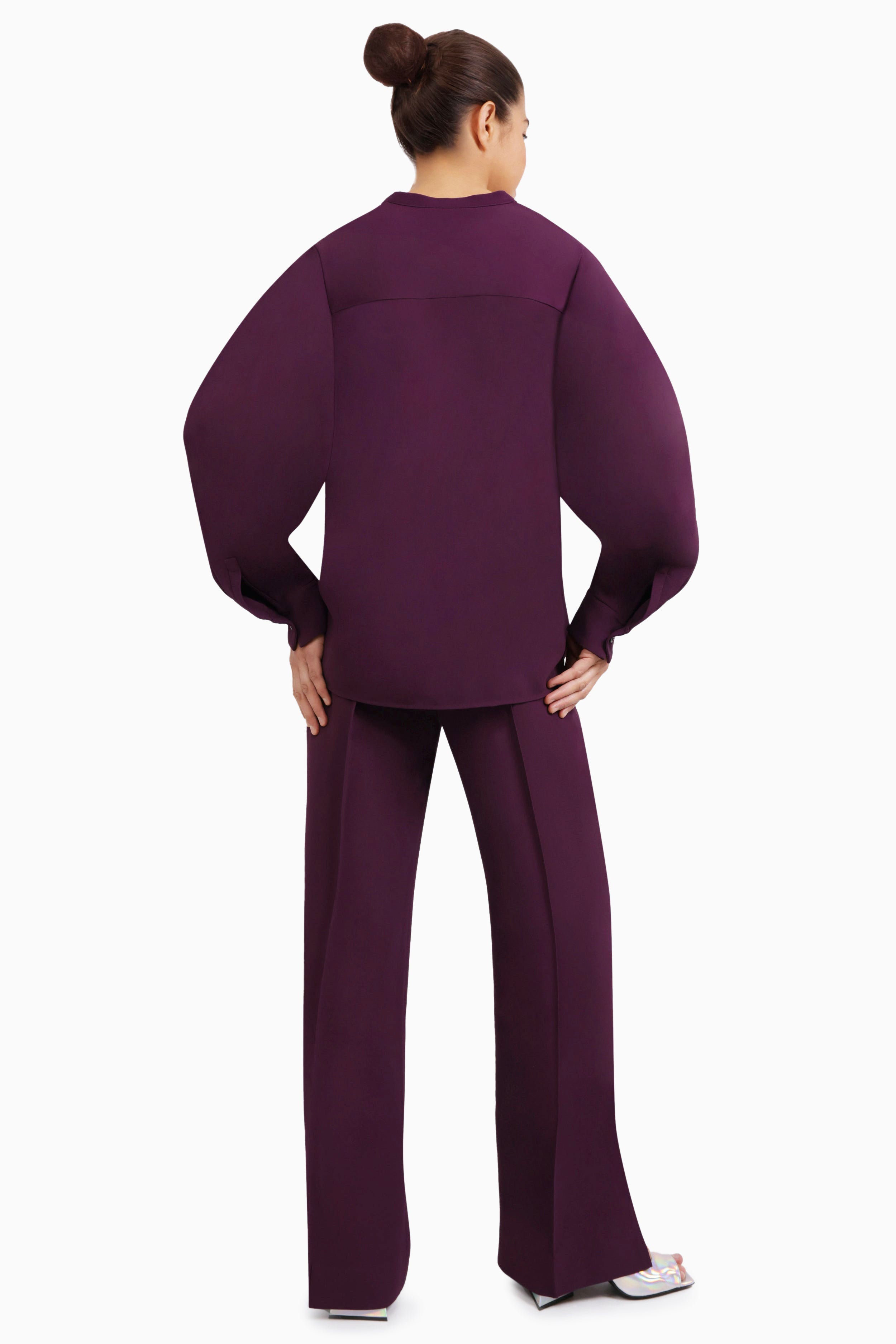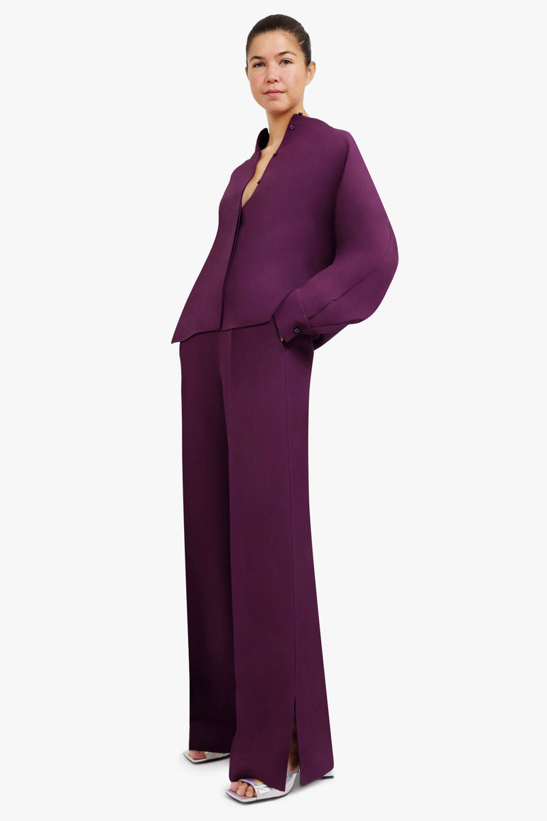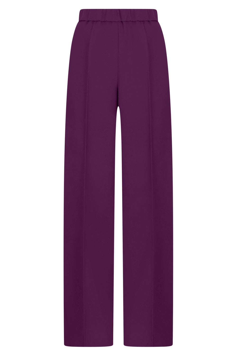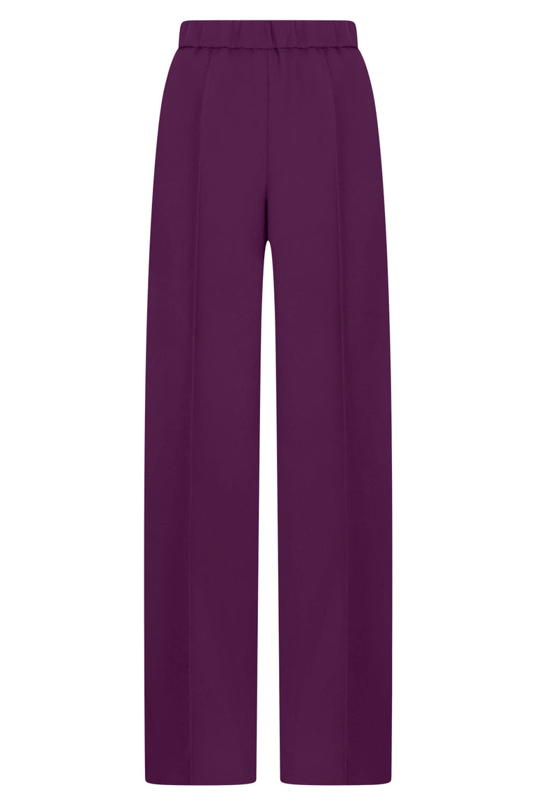 Relaxed Wine Track Inspired Relaxed Pant With Drawstring Gathered Waist And Pin Tucks At Centre Leg And Slits Ham.