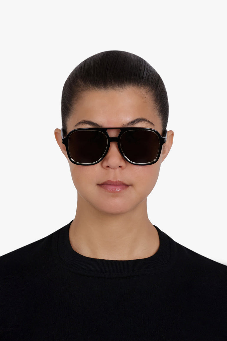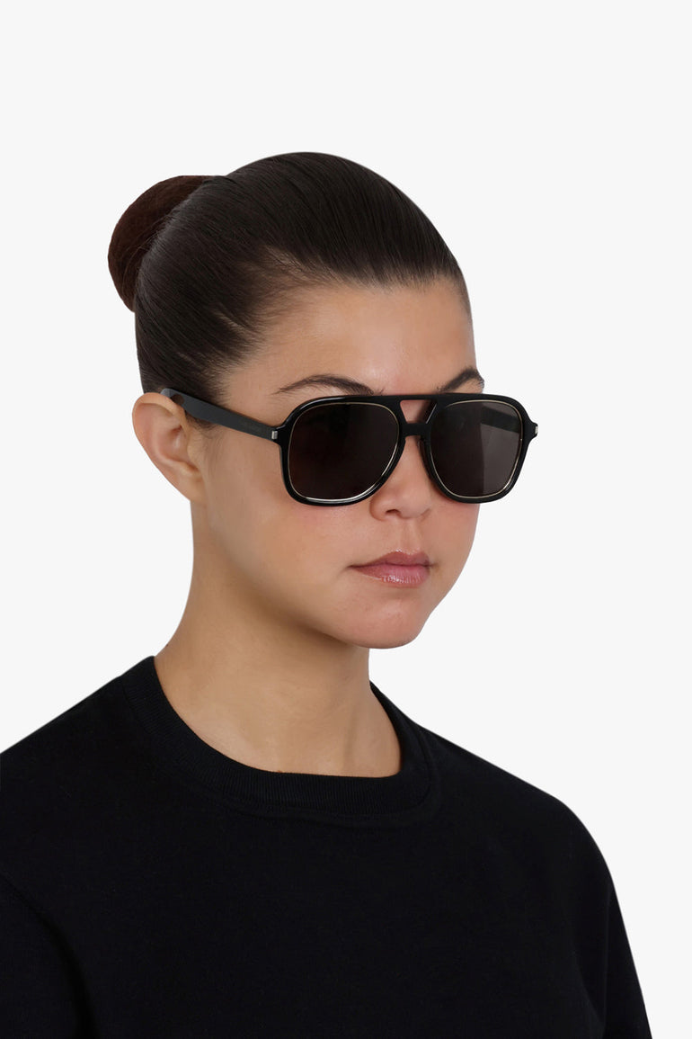Shield Sunglasses with acetate aviator frames and nylon lenses. Highlighted by Saint Laurent engraved temples.