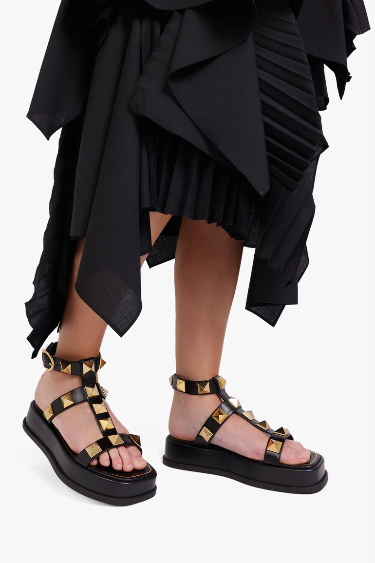ROMAN STUD ANKLE STRAP SANDAL | NERO