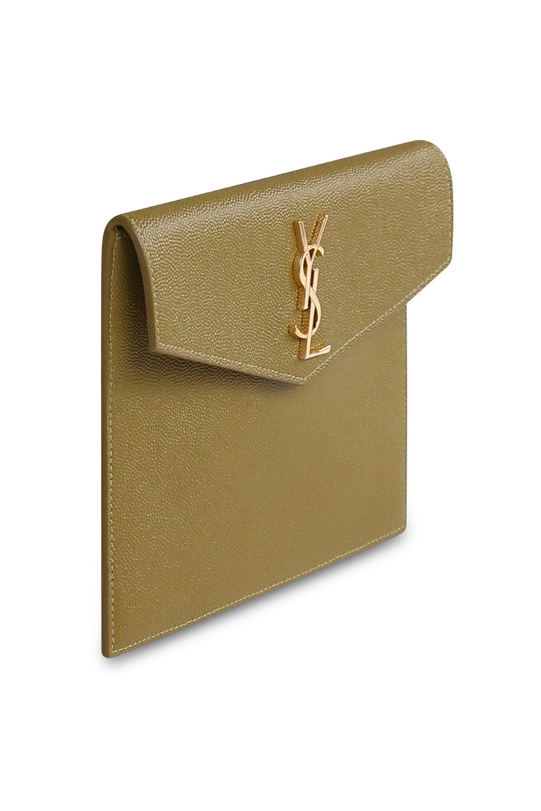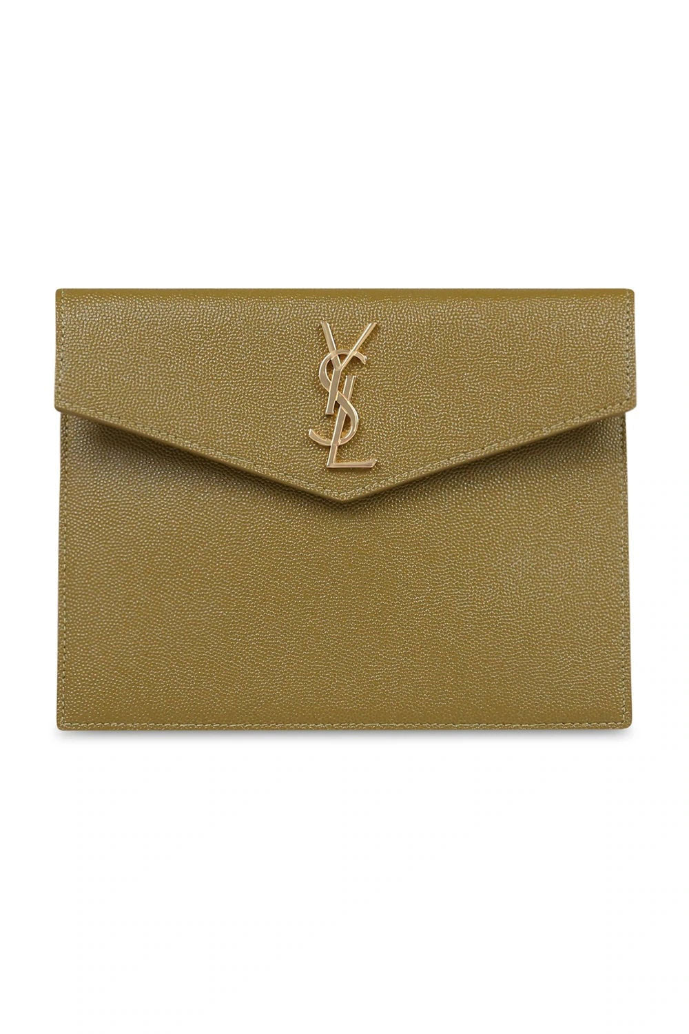 The Saint Laurent Small Uptown Pouch features a metal YSL monogramme at the front. It is crafted from a luxurious grained calfskin leather with a magnetic envelope closure.