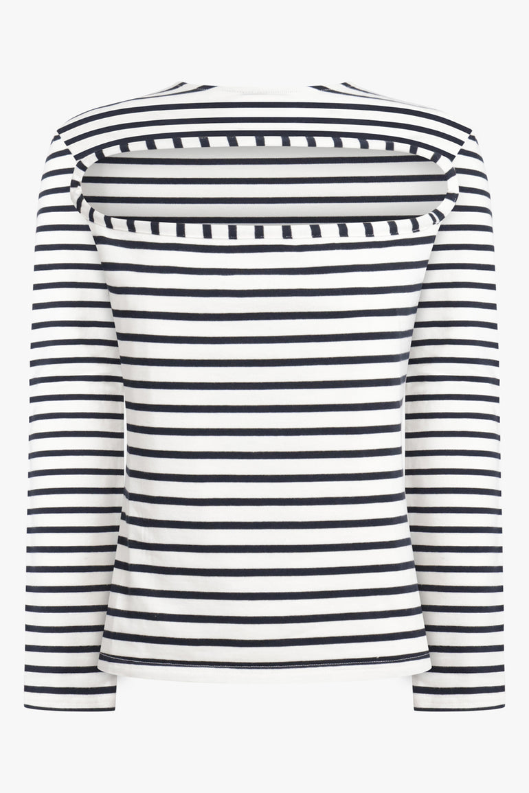Stripe Cutout Front L/S T-Shirt | Navy/White