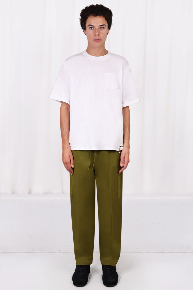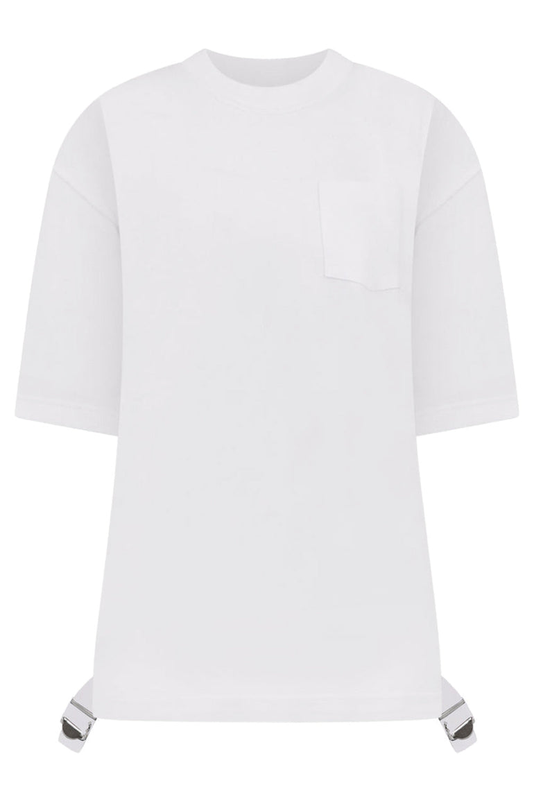 The Sacai Tie Side T-Shirt is a perfect example of creative director, Chitose Abe's ability to blend Japanese sensibilities with everyday streetwear. Featuring a relaxed fit, short sleeves and a ribbed crewneck with chest pocket and an adjustable hem with buckle.