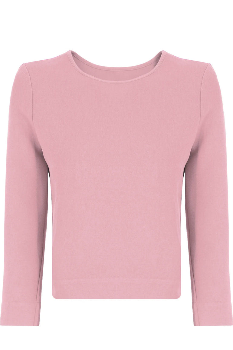 The Maison Poi Crop Top features 3/4 sleeves and a round neck. It is cut in a cropped, fitted silhouette.