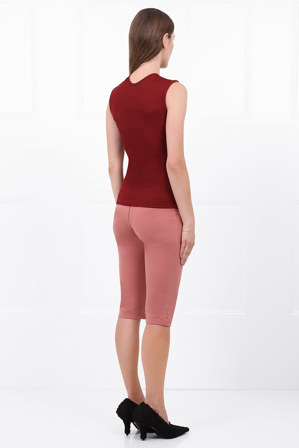 The Maison Poi Tousjour Bike Shorts in salmon are a slim fit pant crafted from a stretch fabric. This style features a high waist, a knee length and a back zip fastening.