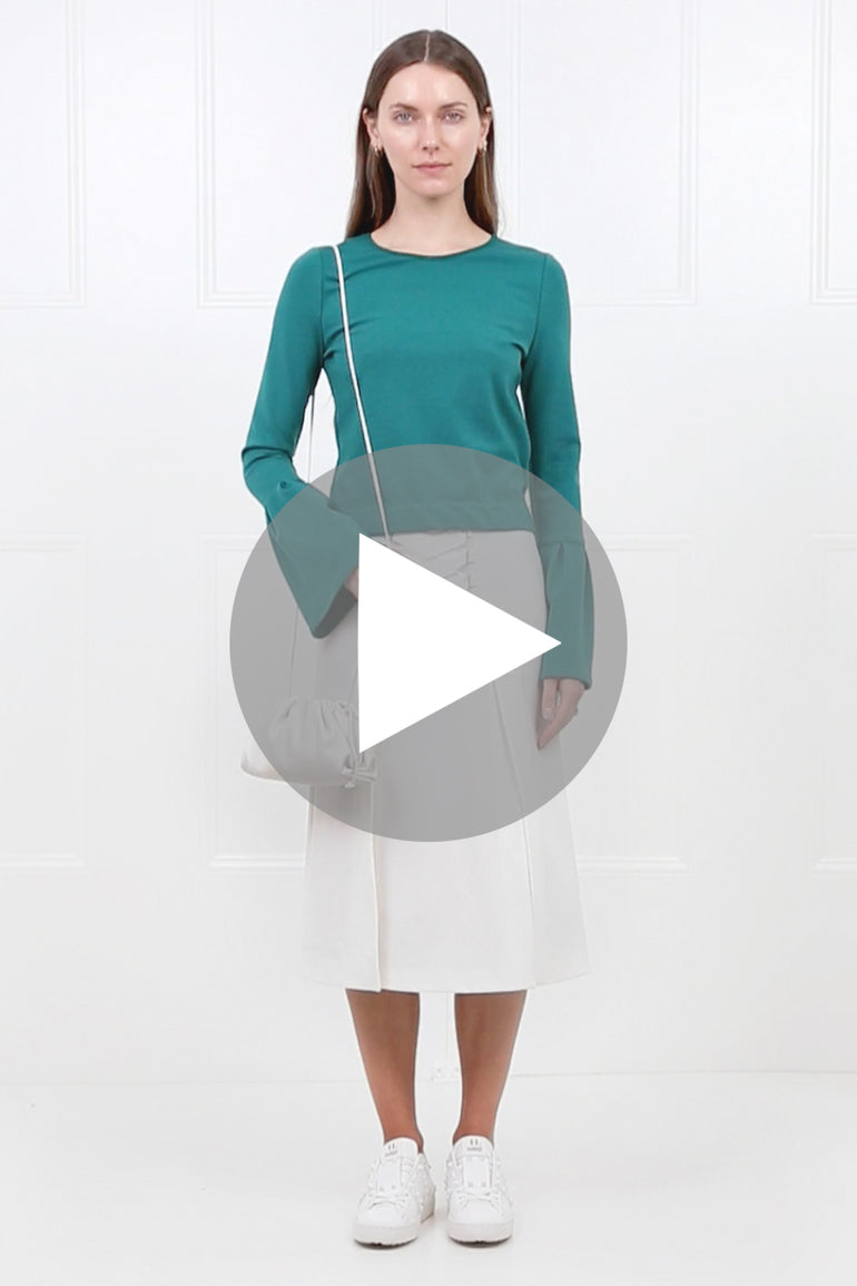 The Maison Poi Tousjour Frill Sleeve Crop Top features 3/4 sleeves and a round neck. It is cut in a cropped, fitted silhouette and features frills at the sleeves.