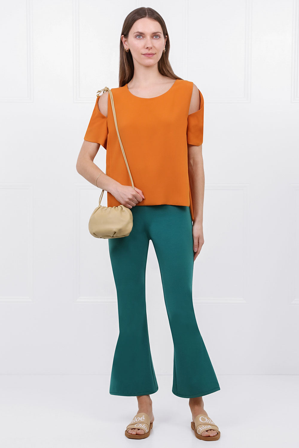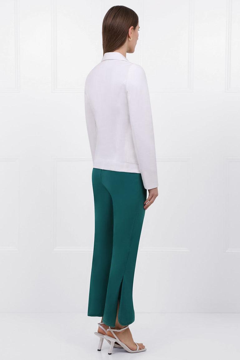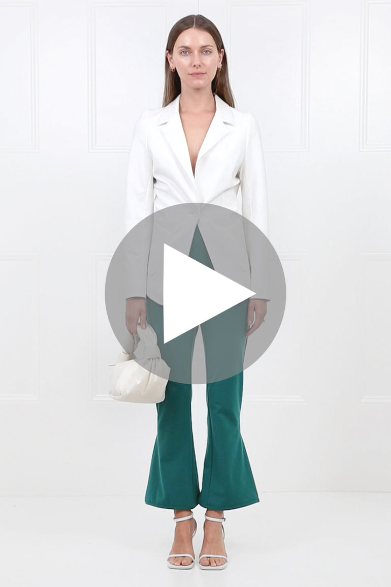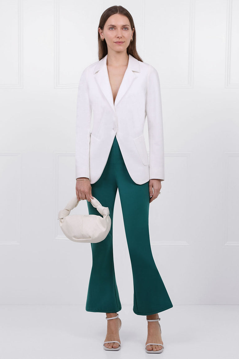 The Maison Poi Tousjour L Pant in forest is a crafted from a stretch fabric and features a back zipper, a cropped length and a flare finish.