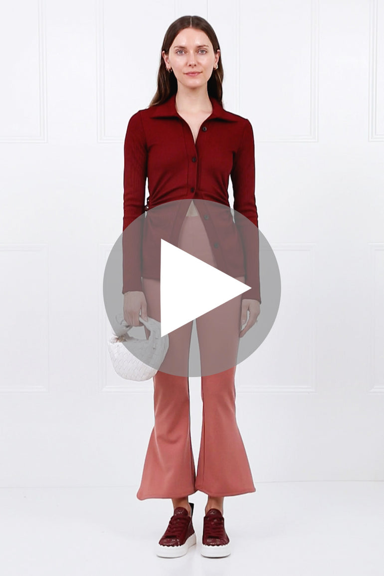 The Maison Poi Tousjour L Pant in salmon is a crafted from a stretch fabric and features a back zipper, a cropped length and a flare finish.