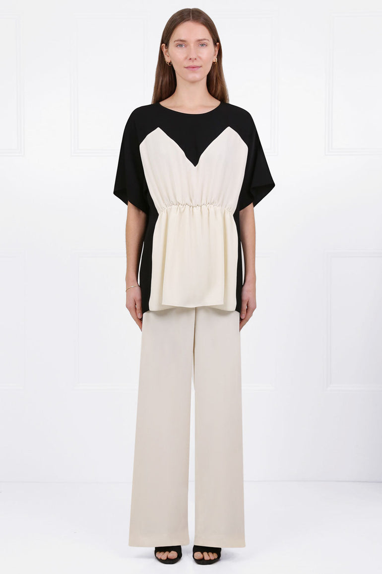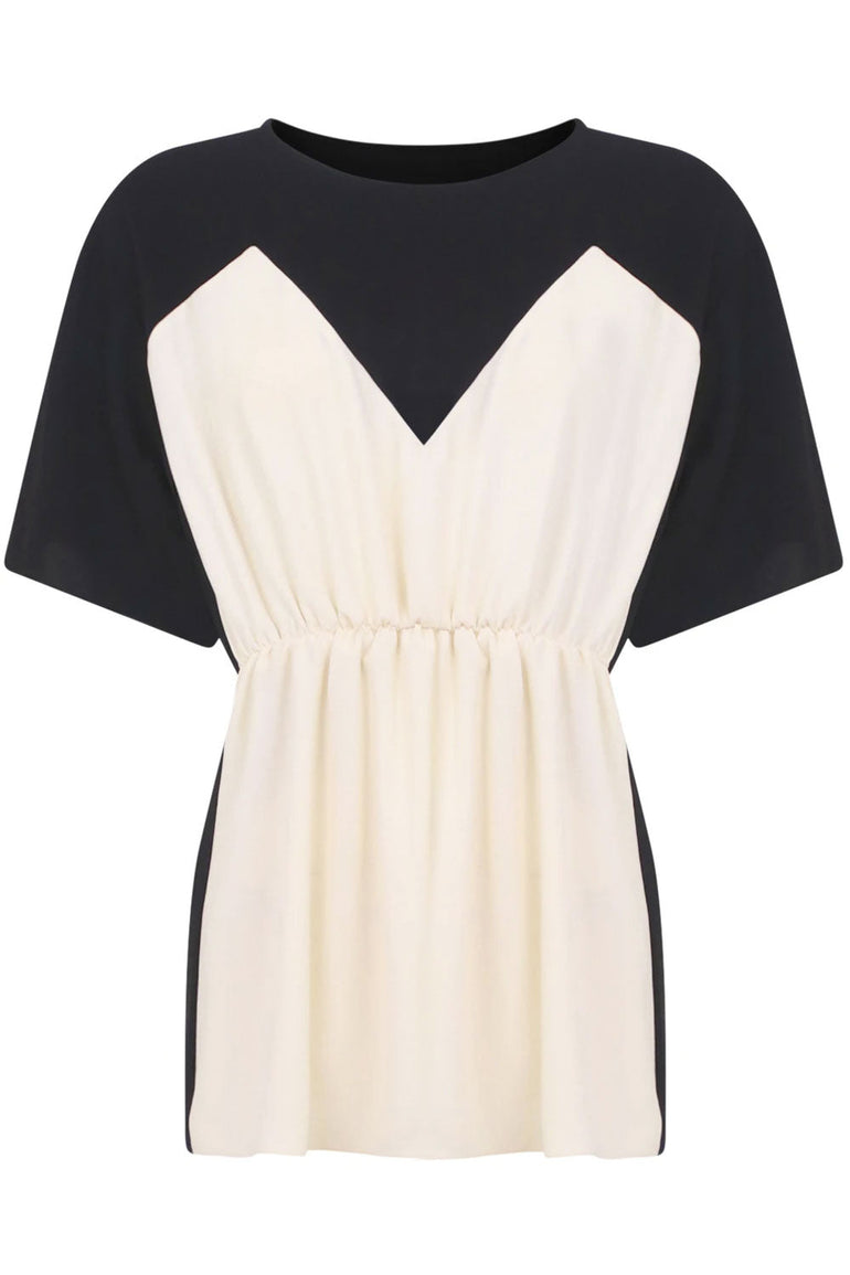 TWO TONE BLOUSE BLACK/OFF WHITE