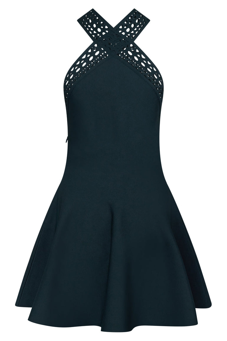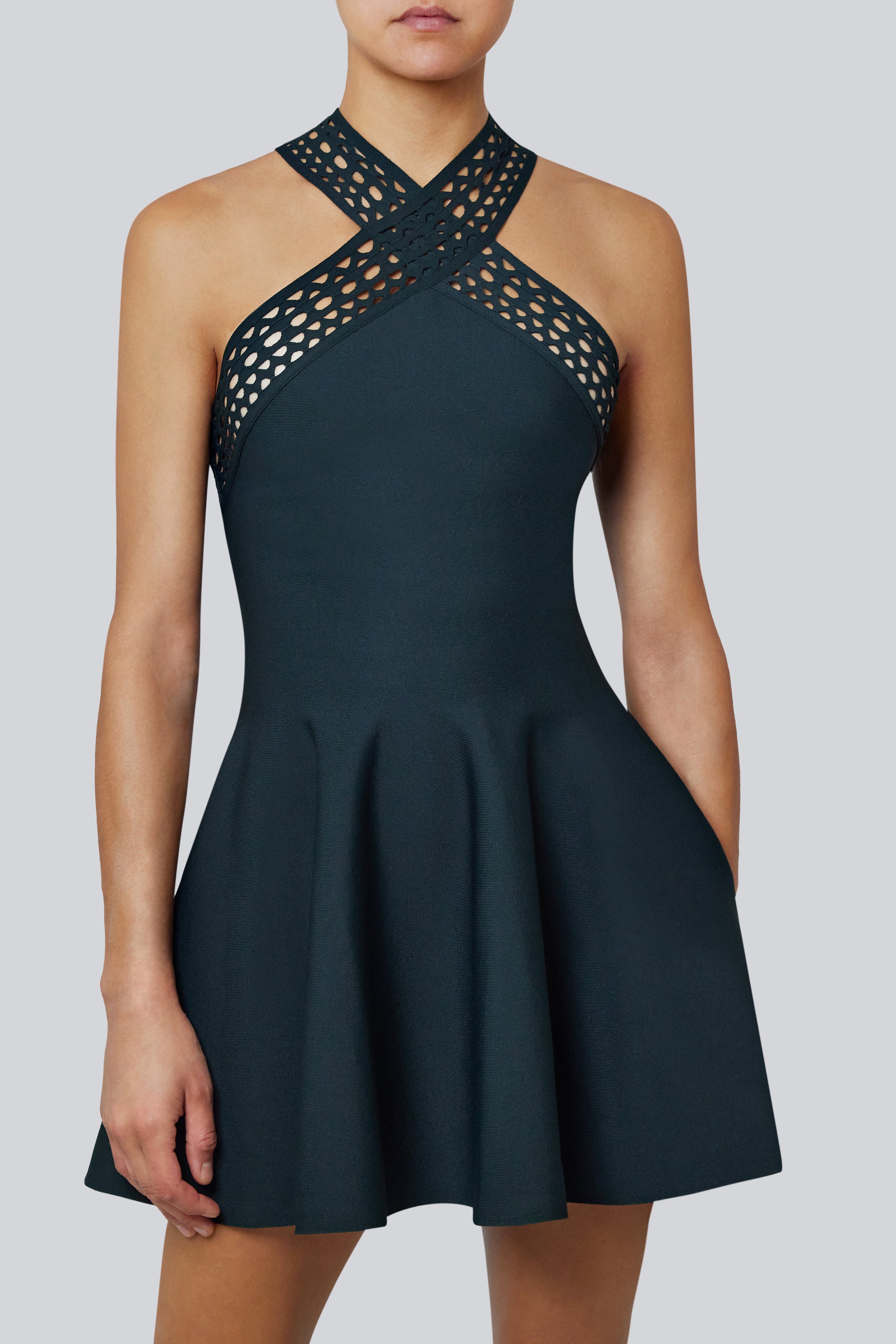 ALAIA RTW Vienne Skater Crossover Dress | Dark Green
