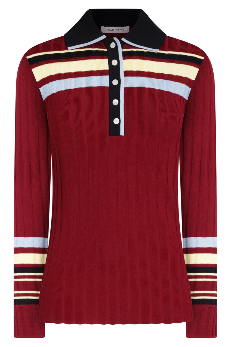 WALES BONNER RTW Wander L/Sl Polo Top | Red/Yellow/Blue