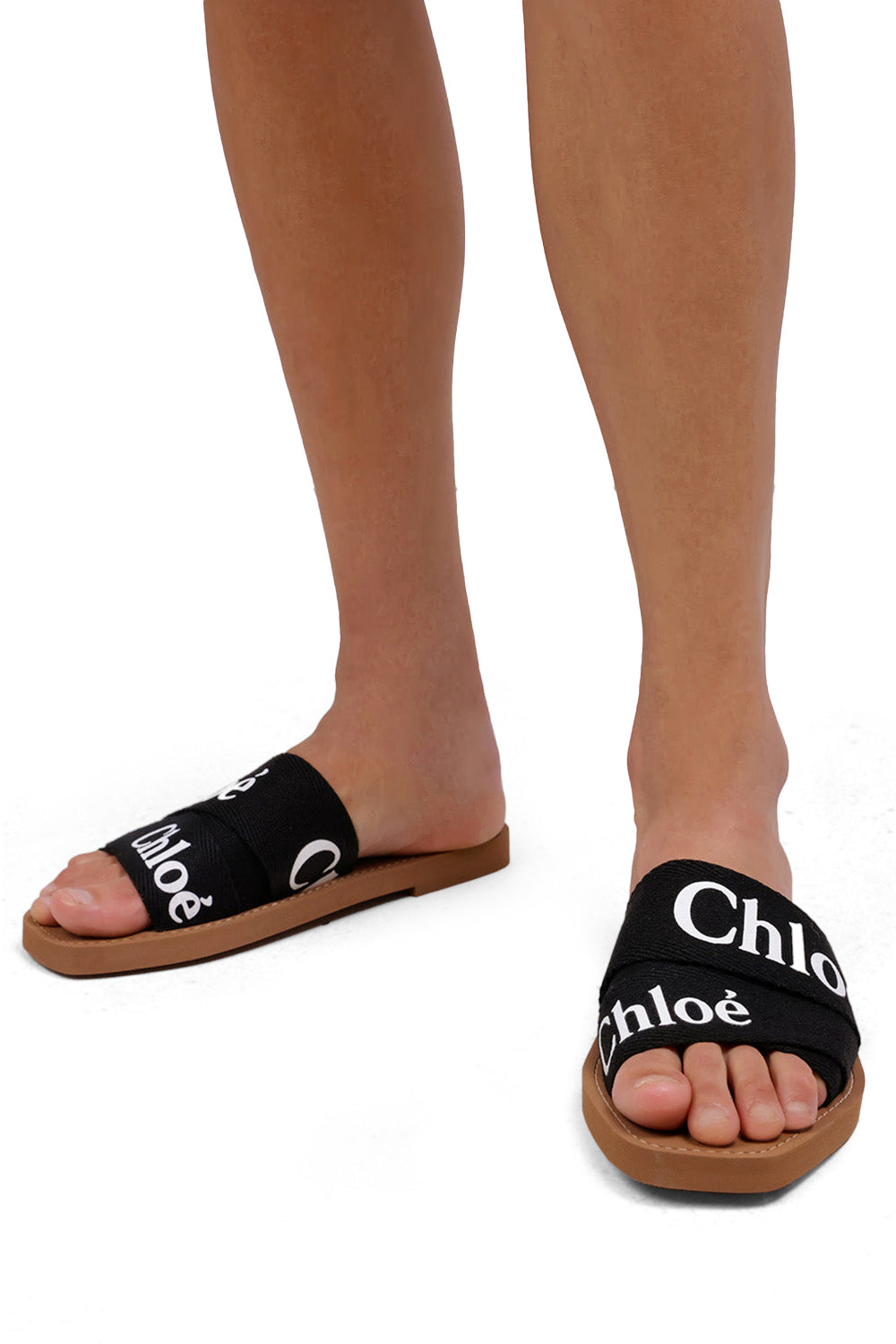 CHLOE SHOES WOODY LOGO SLIDE | BLACK