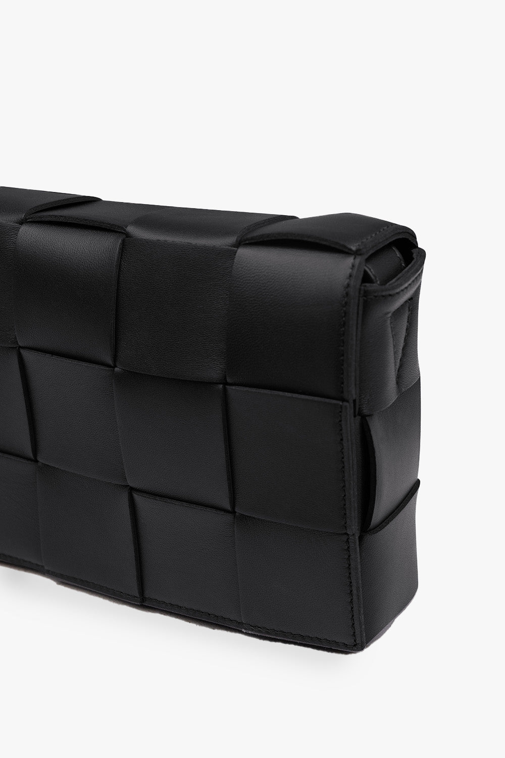 The Bottega Veneta Woven Cassette Bag features wide double-face nappa strips in a maxi orthogonal weave with an identical interior. It is also fitted with a zipped pocket inside. It can be worn easily crossbody or on the shoulder. The strap is adjustable and also folds inside bag to carry as a clutch.