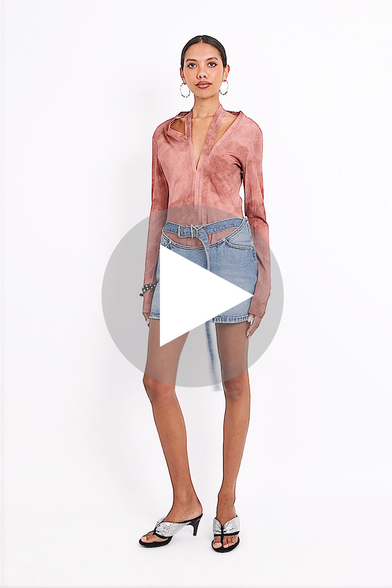 DENIM MINI SKIRT Y-BELT ARC CUT OUT | FADED BLUE