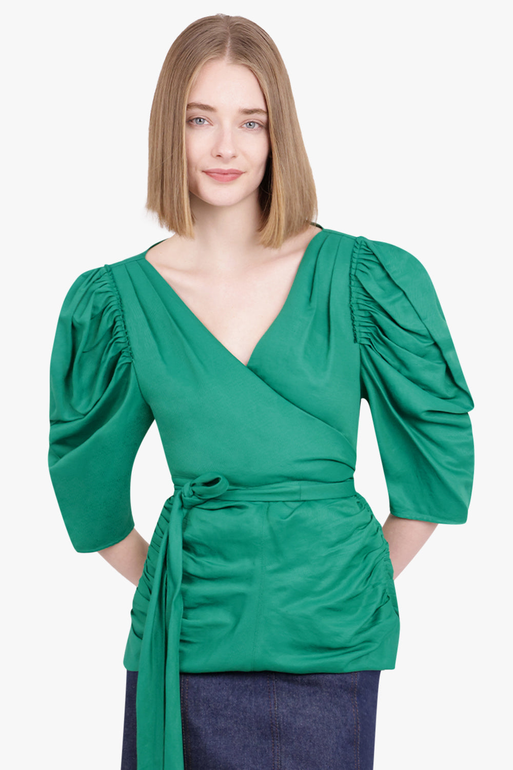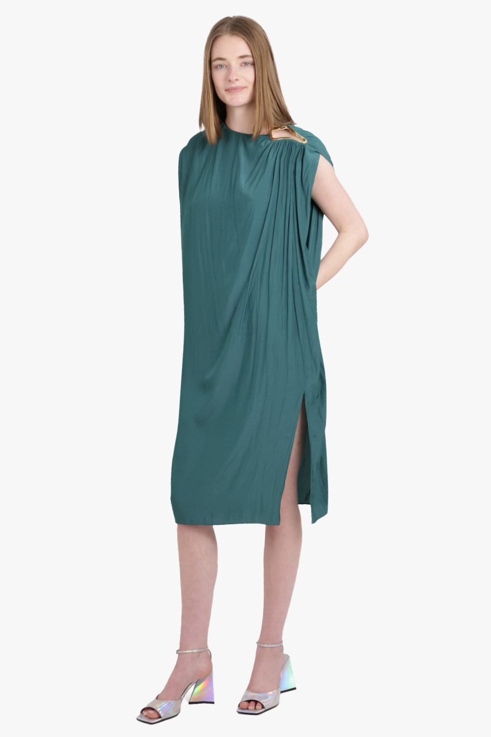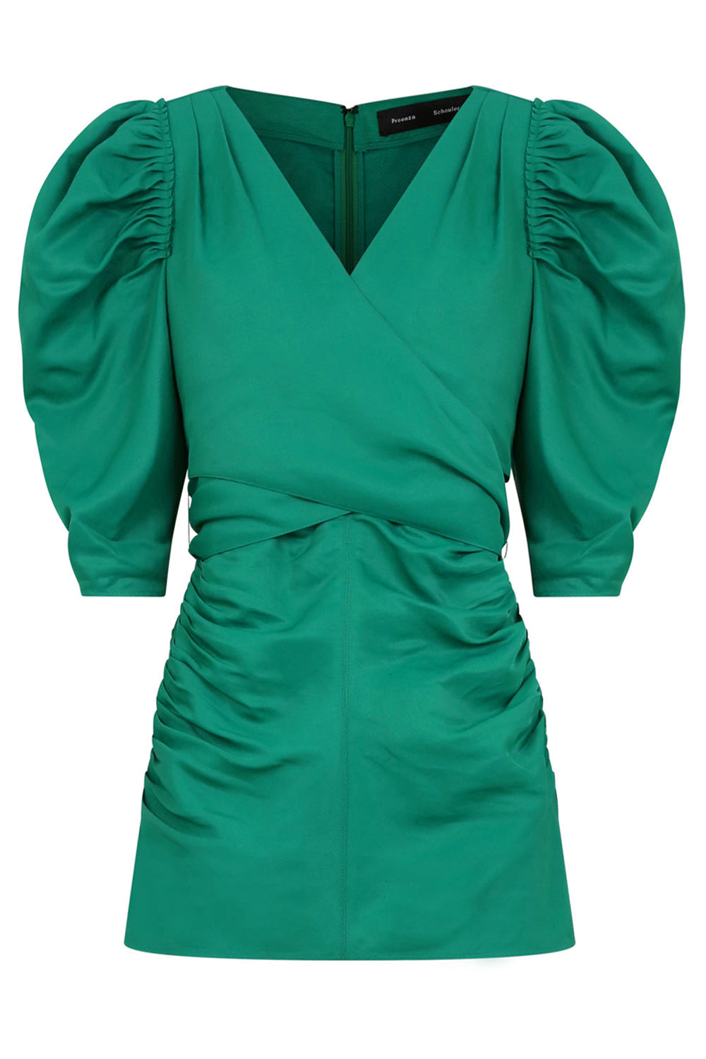 Taffeta Puff Gathered Sleeve Mini Dress | Green