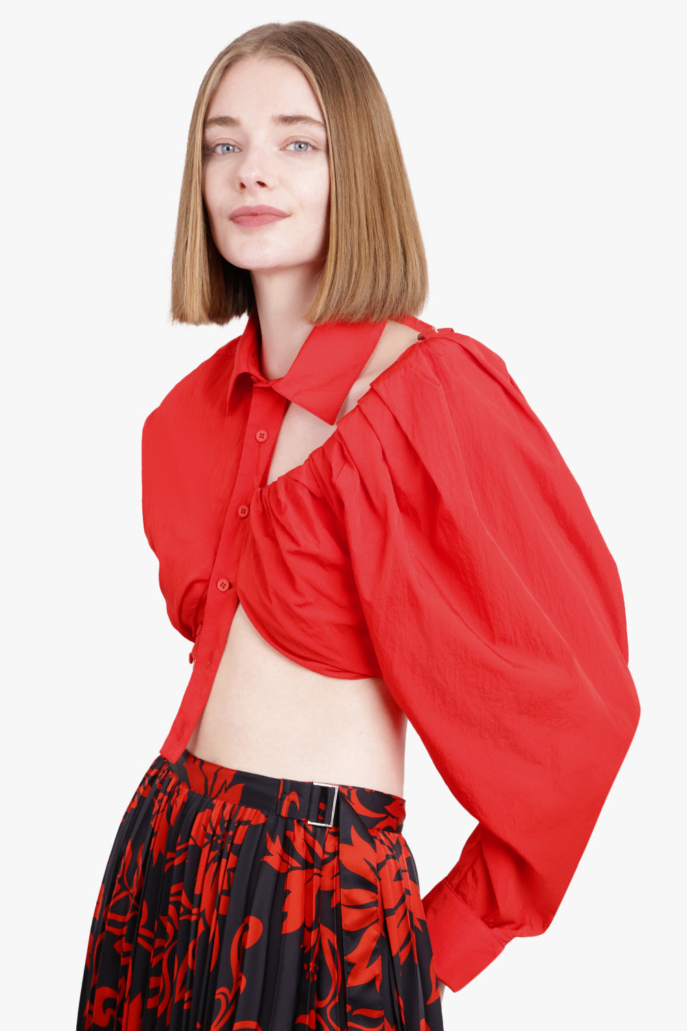 Off-the-Shoulder Smock Mini Dress in Eco-friendly Faille | Lipstick Red