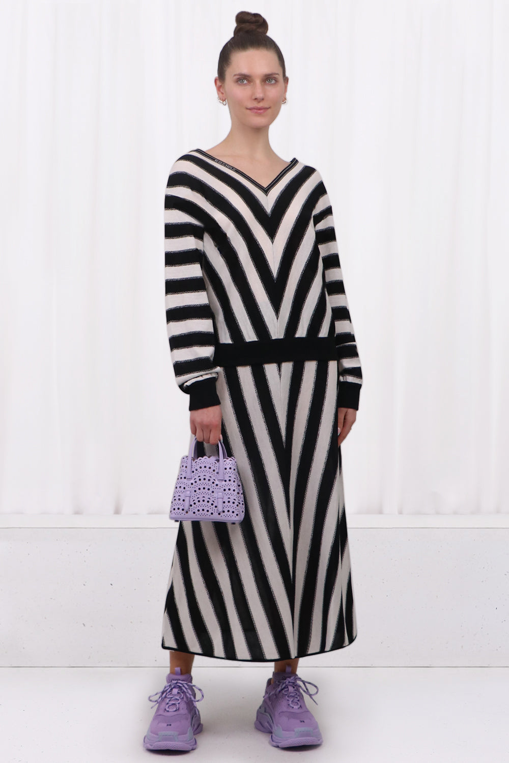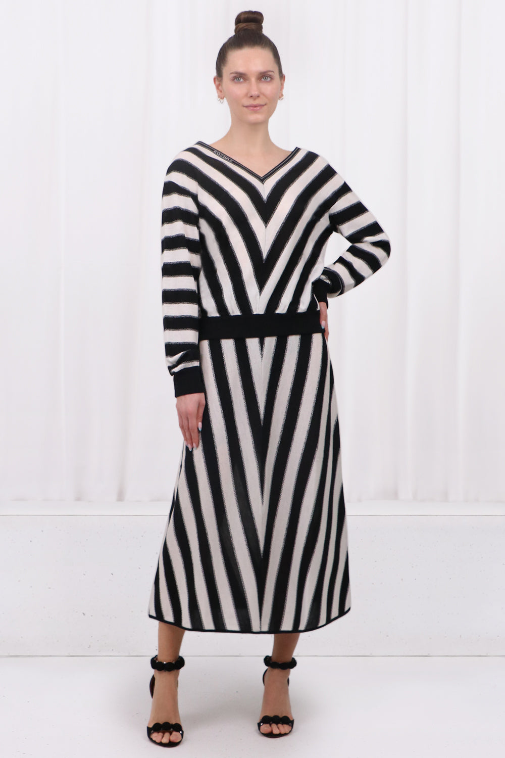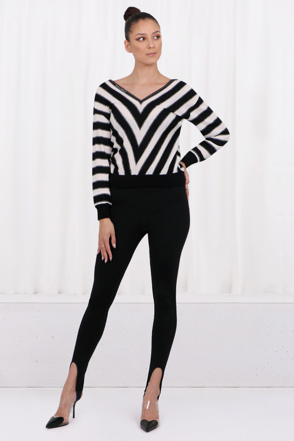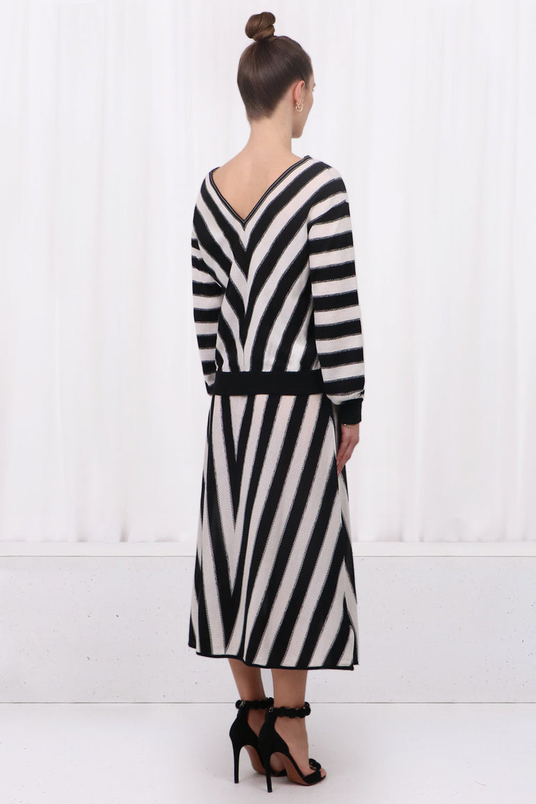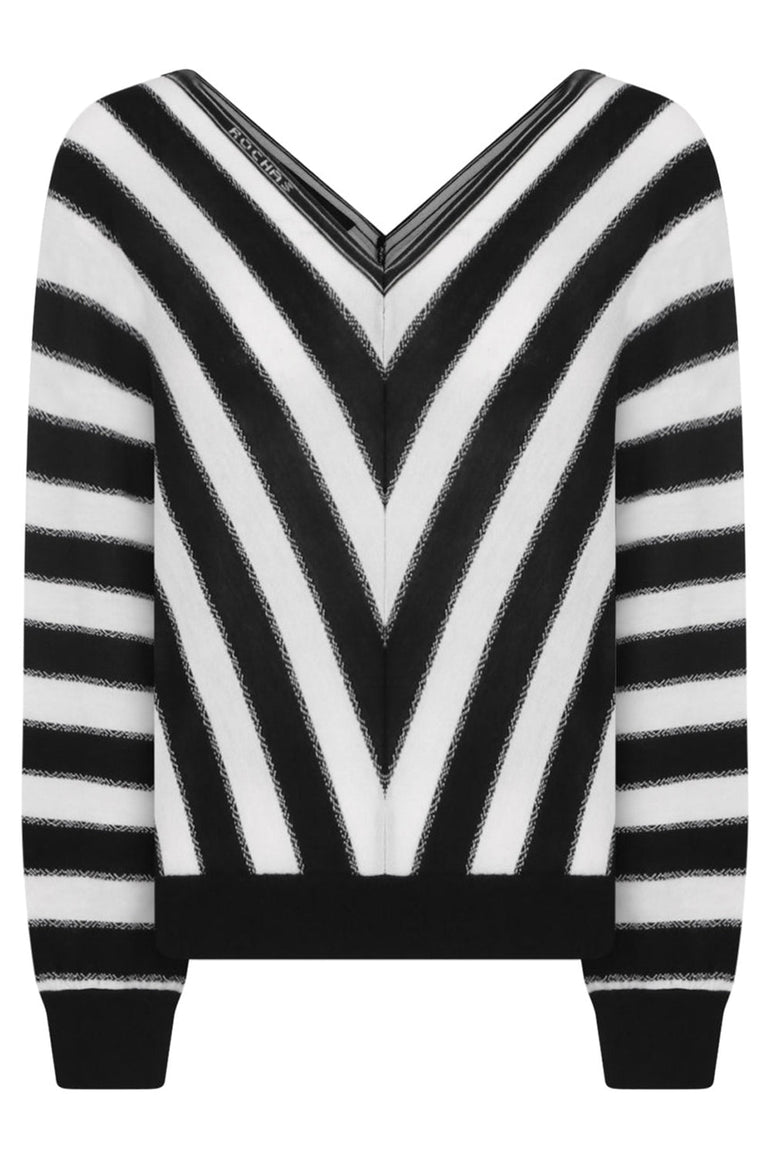 STRIPE V-NECK KNIT TOP | BLACK/WHITE