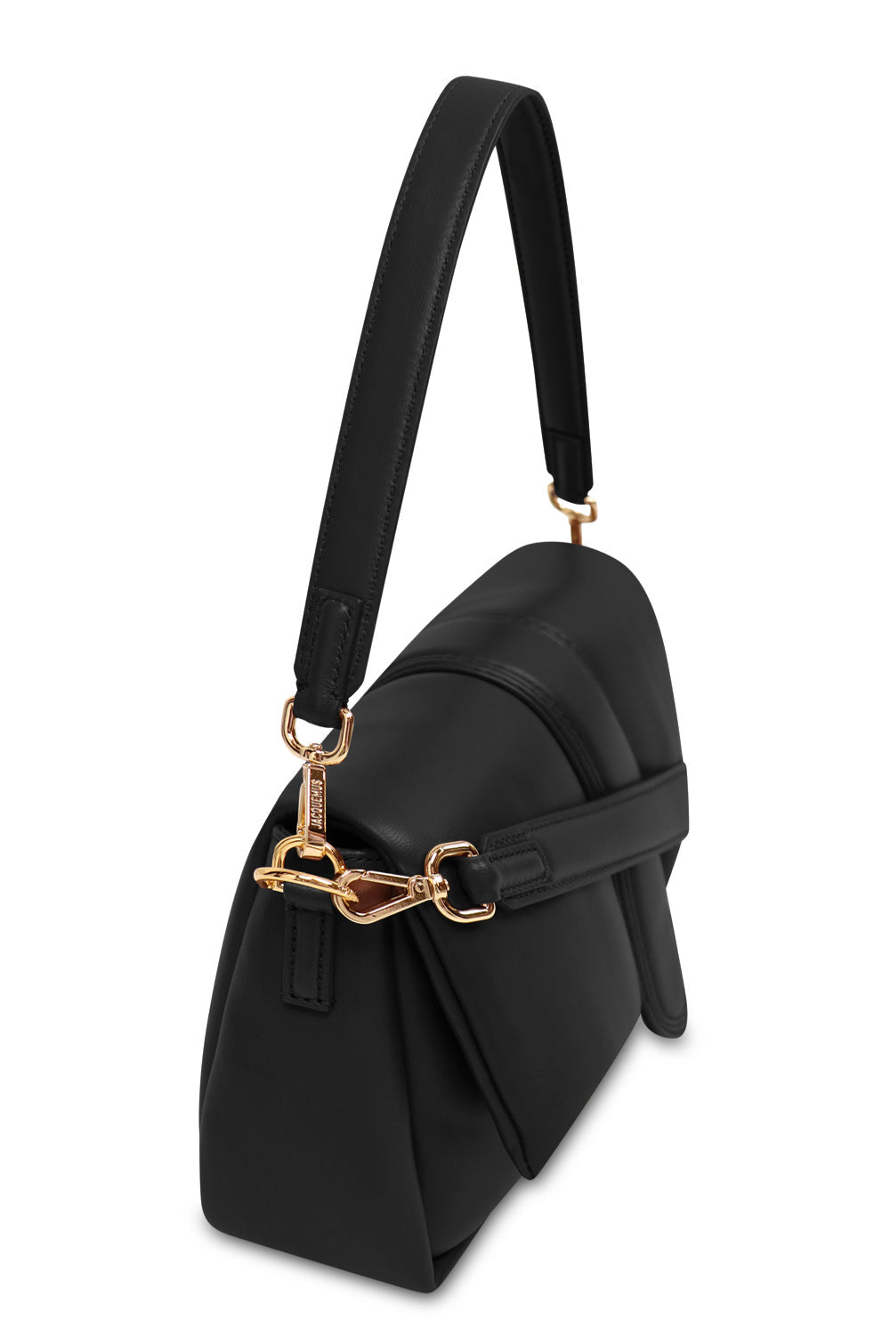 The Jacquemus Le Bambimou Bag in Black is a puffed flap bag, crafted from soft padded leather and gold metal hardware. Debuting in the Le Raphia collection, this bag is the latest iteration of the Le Bambino family and features a magnetic flap tab closure, interior pocket and double shoulder straps to carry on the shoulder or across the chest.