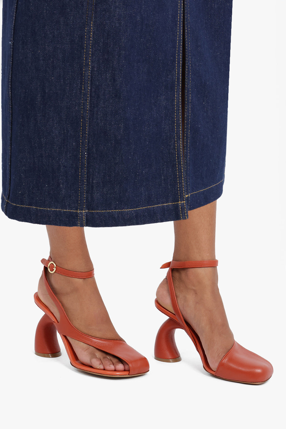 Ankle Wrap Cut Out Curved 95mm Heel Pump | Rust