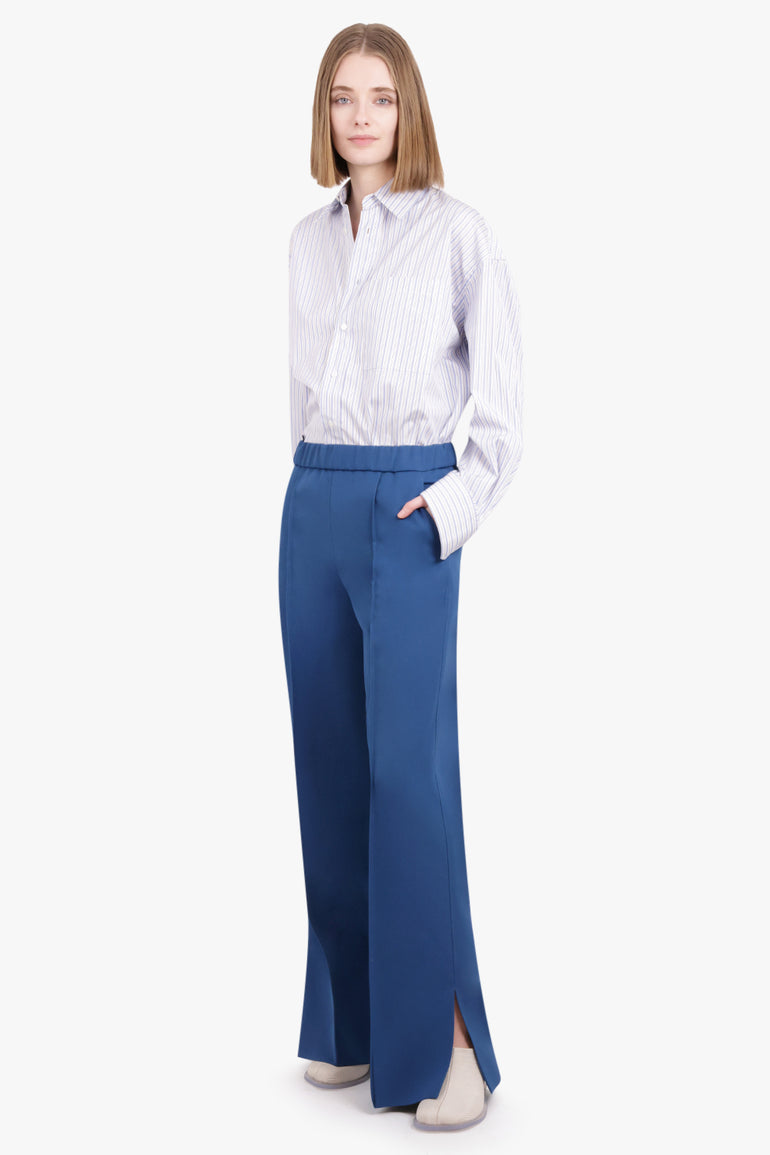 Jil Sanders Night sky Track Inspired Relaxed Pant With Drawstring Gathered Waist And Pin Tucks At Centre Leg And Slits Hem.