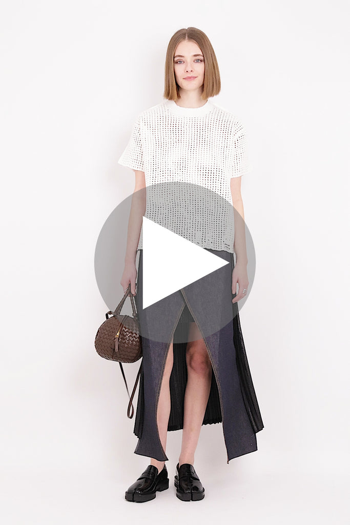 JUNYA WATANABE RTW Mesh Overlay S/S Distressed Knit T-Shirt Top | White