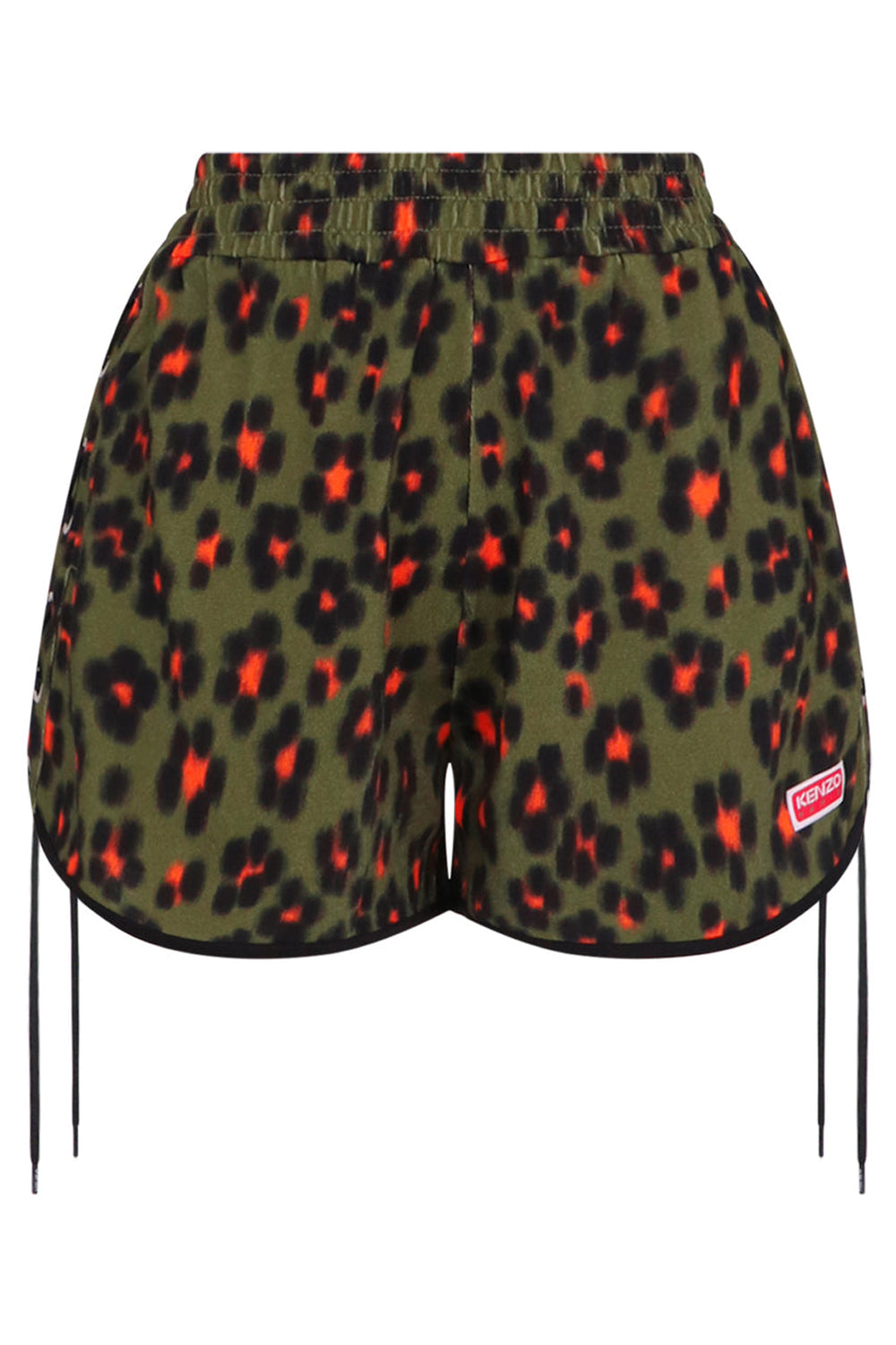 Kenzo's Hana Leopard Shorts in Khaki feature a curved hem, elasticated waist and side detailing with strings and loops.