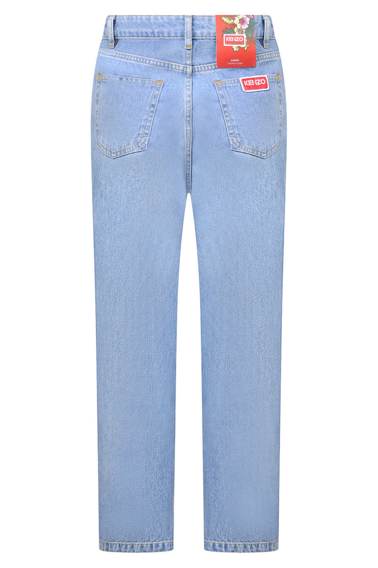 The Kenzo Sumire Cropped Denim in Bleach Blue is frabricated from cotton and features a cropped wide leg fit.