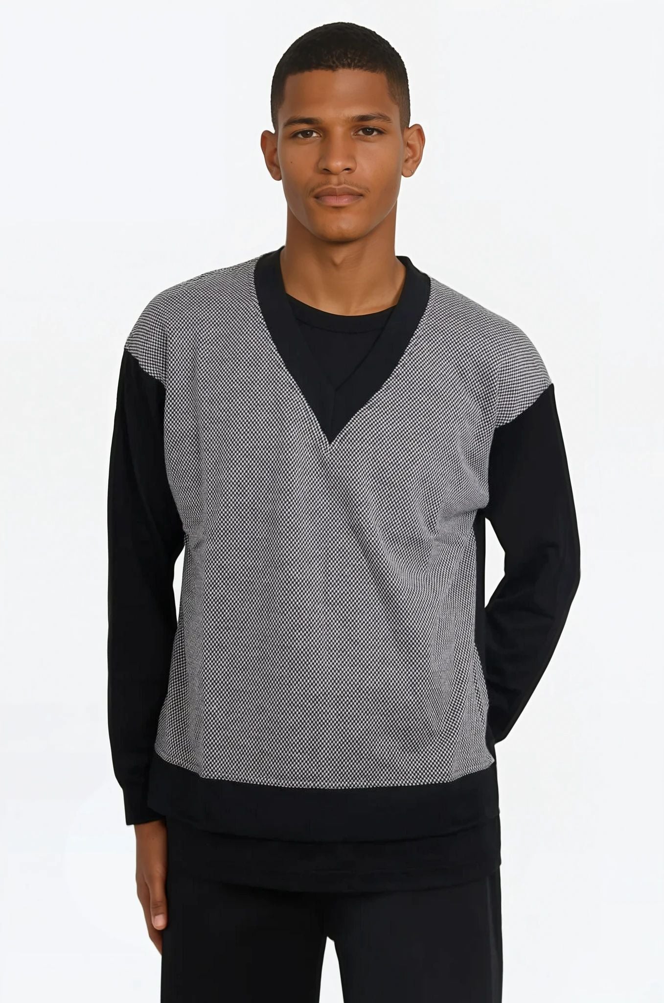 Layered T-Shirt/Print Knit L/S T-Shirt | Black/White