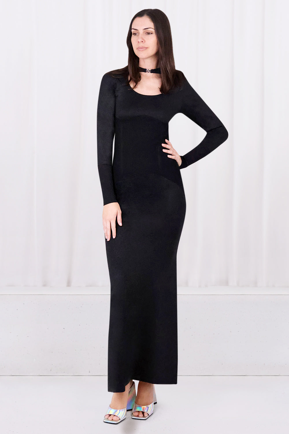 Draped L/Sl Dress | Black